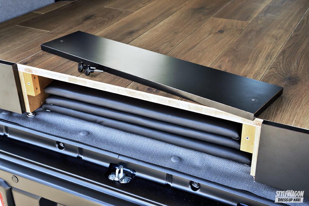 フュージョンはワイルドなオフロードスタイルのエブリイにマッチする内装アイテムも用意している。まず純正のステアリングに被せるだけでイメージが変わるハンドルカバーは、アウトドアファッションでも人気の迷彩柄を採用。自分の服などとコーディネイトするのも楽しそうだ。またオシャレなアンティーク調のレザーを採用したシートカバーも設定。本革に近いPUレザーにポリウレタン樹脂を塗布することで質感を高めている。そして姉妹ブランドのシュピーゲルからは、エブリイバン専用設計のベッドキットをリリース。マットをレスとしたフローリング調のベースキットも用意している。