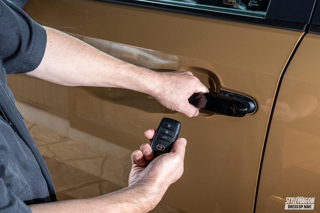 上段でも記しているようにデジタル式のカーセキュリティにはリモコンが存在せず、純正スマートキーに小さなキーフォブを付帯させておくだけ。このシンプルさが機械モノにめっぽう弱い奥さまにも好評なんですって!!