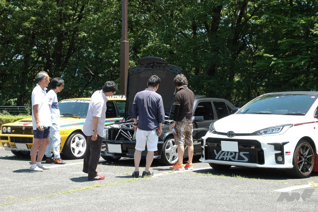 五十嵐さんはチューニングやカスタムより、GRヤリスで走ることを楽しんでいる。今回も、ランチア・デルタインテグラーレ16Vを赤マルティニレプリカにした氷室豊さんの赤マルティニお披露目ツーリングに誘われて参加したGR。1990年代グループAマシンの中に最新のクルマが並ぶことになった。