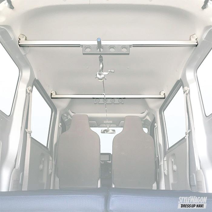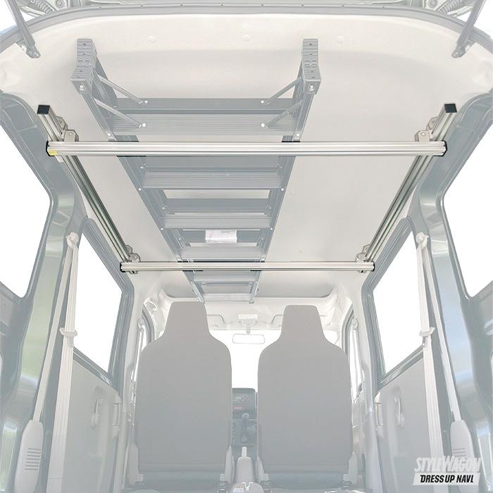 アルティキャリアとは、レールが付いたアルミ製フレームを天井に取り付け、自由にカスタマイズが可能な室内用キャリアシステム。実用新案を取得して、多くのユーザーに愛されている。ベーシックで最もリーズナブルなクロスバーキットから長尺物を積み込めるクロスバーキット&ボードキャリアキット、外部からプライバシーを守るカーテンレールキットと、用途に合った使い方ができる。