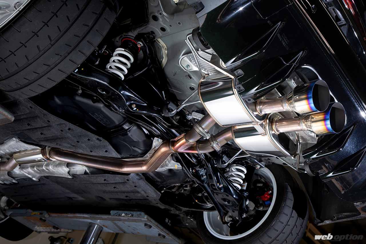 一方のパワーチューニングに関しても開発はかなり進んでいる。エキゾースト環境には、中間パイプからフル交換する車検対応マフラー『リーガマックススポーツ』を設定。こちらはパイプ径の拡大やストレート構造の採用により、純正に対して排圧マイナス30%を達成。スムーズに排気が抜けるようになり心地のいいサウンドが楽しめる。