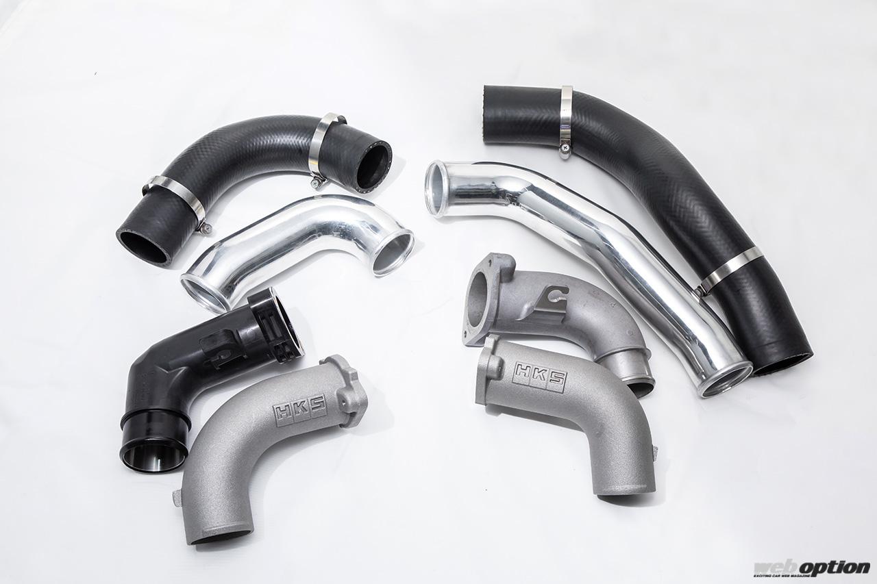 そこでHKSは、純正コアから置き換えで使用できるサイズでありながら、面積を純正に対して22.4%アップさせる製品を開発。純正パイピングとのドッキングが可能な上、キットにはロゴスプレー用のマスキングシートも付属するので、DIYで手軽にチューンド指数を高めることが可能だ。