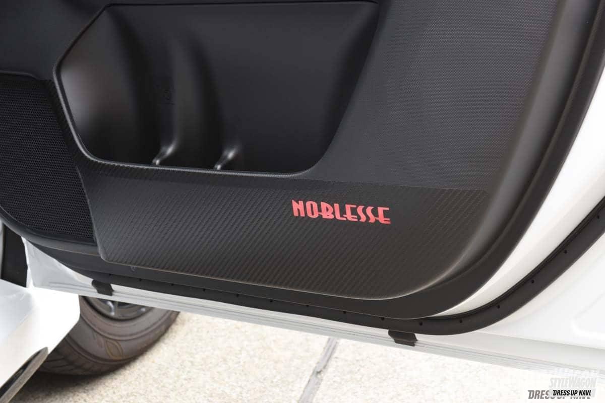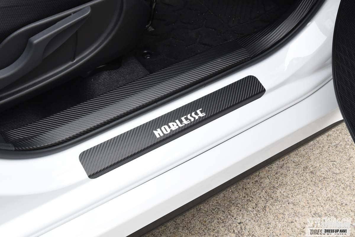 足をあてて汚してしまいがちな、ドア内張りの保護用シートも開発中。フィルム系でも有名なAQUAとのコラボだ。