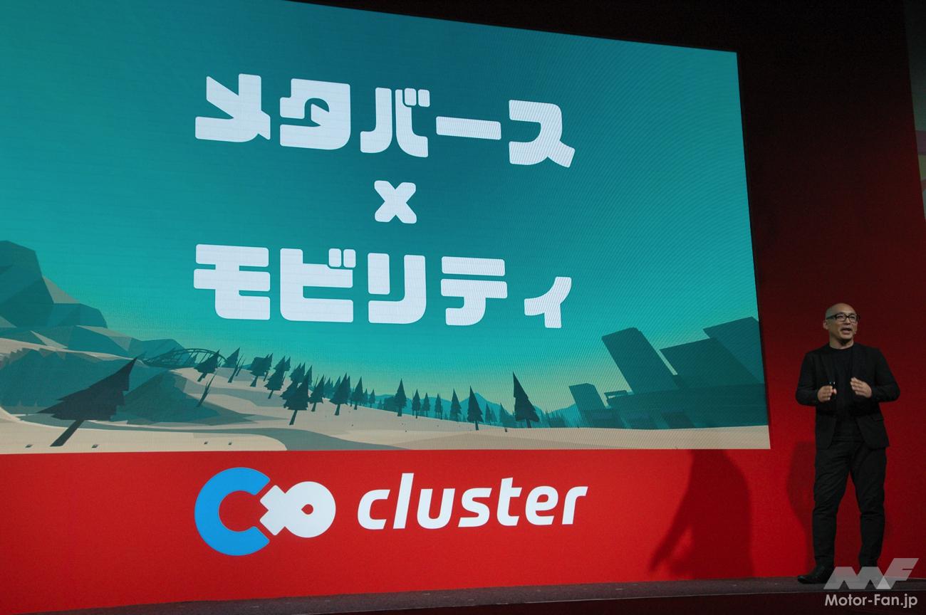 『cluster』はイベント累計動員数2000万人を誇る国内最大級のメタバースプラットフォームで、年間200社以上がさまざまなビジネスシーンで利用している。ちなみに、2023年1月に開催された「東京オートサロン2023」の『GR/レクサスバーチャルガレージ』はこのclusterを使用したものだ。