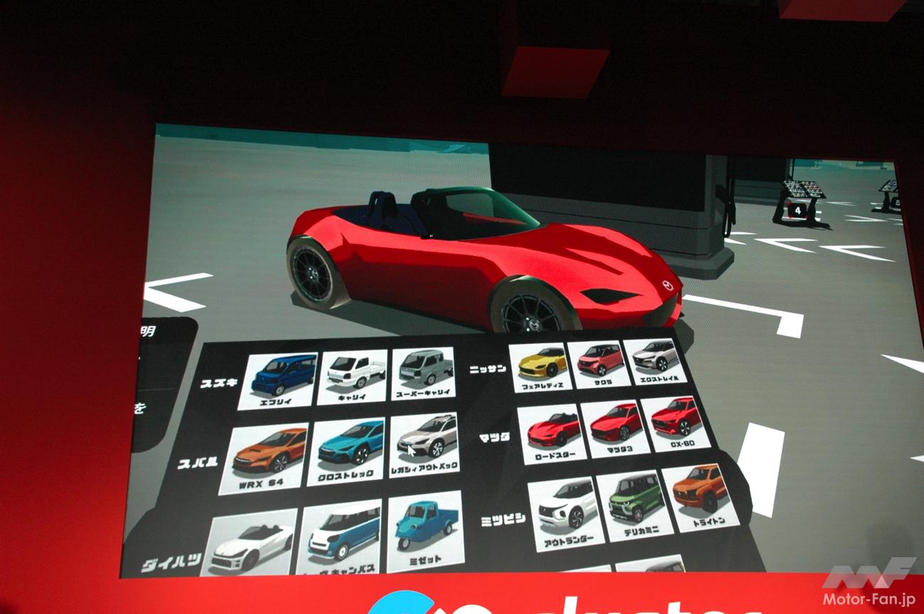 ■登場車種リスト スズキ:エブリイ、キャリイ、スーパーキャリイ スバル:WRX S4、クロストレック、アウトバック ダイハツ:コペンGR SPORT、キャンバス、ミゼット トヨタ:GRスープラ、プリウス、RAV4 日産:フェアレディZ、サクラ、エクストレイル マツダ:ロードスター、3、CX-60 三菱:アウトランダー、デリカミニ、トライトン ホンダ:シビックTYPE-R、N-ONE RS