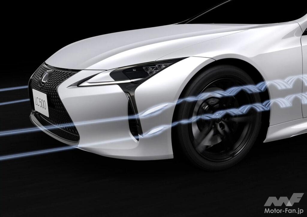 カナードはレーシングカーでは定番のアイテムで、WEC(FIA世界耐久選手権)に参戦するTOYOTA GAZOO RacingのGR010ハイブリッドや、SUPER GTのGRスープラGT500にも取り付けられている。だが、どちらもバンパーに別体パーツを後付けするタイプ。一体成形は異色だ。「レクサスにふさわしい美しいカナードをつくる」ため、継ぎ目のないシームレスかつ高剛性なカナードを開発した。