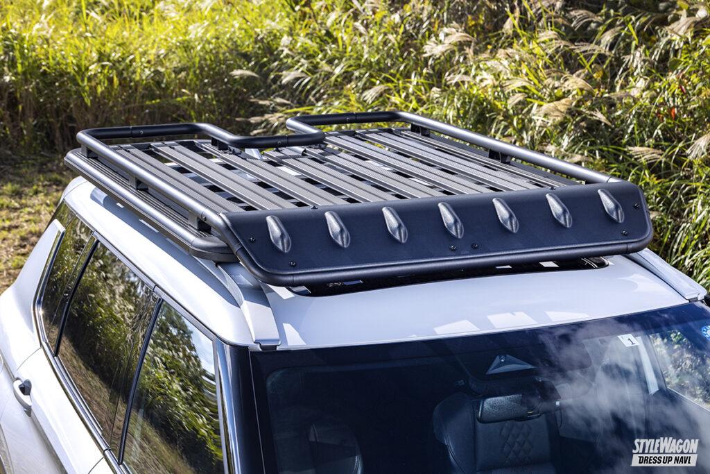 東京オートサロンや大阪オートメッセでは三菱自動車とのコラボ展示を行うなど、デリカD:5を筆頭に、三菱車用アイテムの充実度にかけては業界屈指のレベルを誇るオートフラッグス。もちろん現行アウトランダーもその主力車種のひとつとして位置付けられ、開発用デモカーも導入済み。まず第一弾の専用アイテムとして形状やフィッティングの検証が進められているのが同社のルーフキャリアシリーズ、「バスターズ」のアウトランダー用。立体駐車場での利便性を考慮したローマウント構造や風切り音を低減させるフロント部分のフェアリングなど、定評の基本設計はこれまで同様。その他、クロカンテイストを引き立てるマッドフラップも来年の発売開始に向けて準備中。製品の開発はデリカミニやトライトン用など他車種との同時進行となっているためスピードアップは困難だが、来るべき日に備えて購入資金の工面に励むのもイイかも知れない。