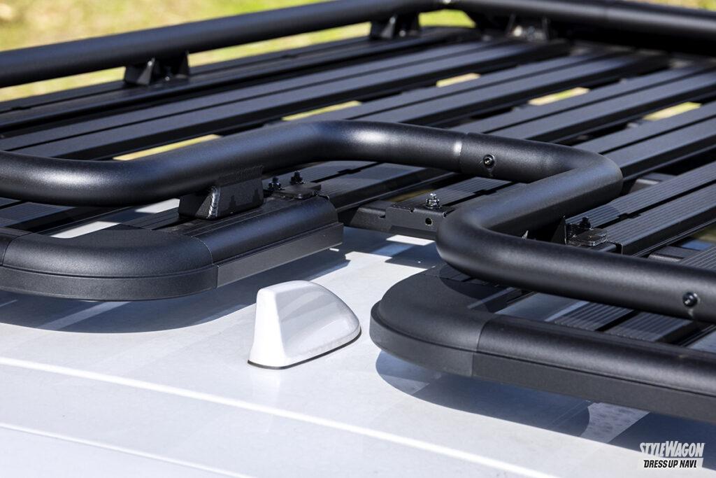 東京オートサロンや大阪オートメッセでは三菱自動車とのコラボ展示を行うなど、デリカD:5を筆頭に、三菱車用アイテムの充実度にかけては業界屈指のレベルを誇るオートフラッグス。もちろん現行アウトランダーもその主力車種のひとつとして位置付けられ、開発用デモカーも導入済み。まず第一弾の専用アイテムとして形状やフィッティングの検証が進められているのが同社のルーフキャリアシリーズ、「バスターズ」のアウトランダー用。立体駐車場での利便性を考慮したローマウント構造や風切り音を低減させるフロント部分のフェアリングなど、定評の基本設計はこれまで同様。その他、クロカンテイストを引き立てるマッドフラップも来年の発売開始に向けて準備中。製品の開発はデリカミニやトライトン用など他車種との同時進行となっているためスピードアップは困難だが、来るべき日に備えて購入資金の工面に励むのもイイかも知れない。