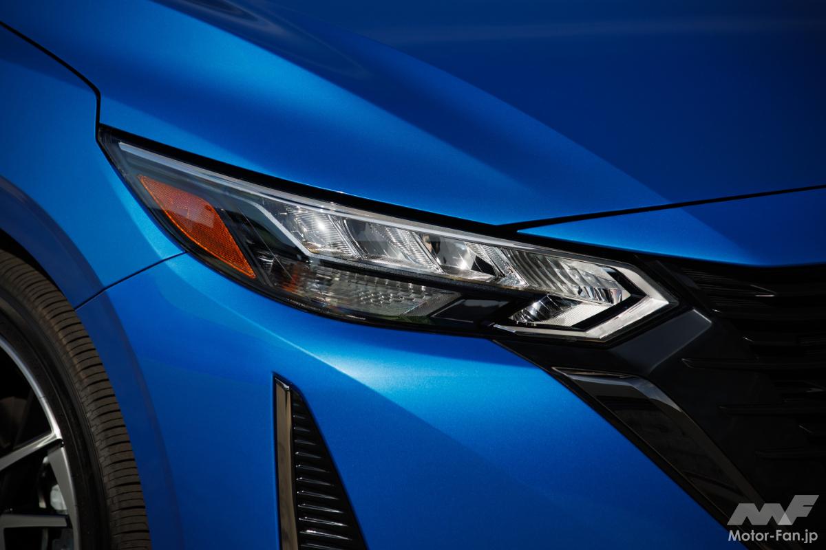 2024年型「セントラ」の変更点としては、日産のVモーショングリルを新たに解釈したフロントマスクの形状変更、ヘッドライトの刷新、16インチアルミホイールの新デザインなど、デザイン面がメインとなっている。スポーティな「SR」は、赤いSRバッジ、新デザインの18インチアルミホイール、Vモーショングリルのダーククロームトリムなど、個性的なデザインとなっている。