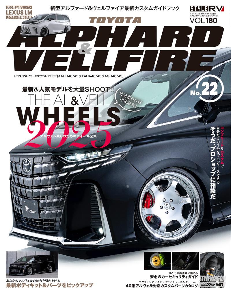 30系から40系へと進化し、はや1年と少々が経過した現在。より纏う車格や存在感が増し、国内における最上級ミニバンとしても君臨しているアルファード&ヴェルファイア。やはり車好きであると、そんな車両でも世界に一つだけのものとして、自分好みにカスタムしたいもの。12/26に発売するスタイルRVアルファード&ヴェルファイアNo.22では、そんな欲望を満たす、至極の1冊となっている。これから展開される2025モデルホイールや、最新ボディキットからカスタムアイテム、はたまた気になるあの情報まで、隅々まで見逃せない内容となっている。アルヴェルオーナーのみならず、これから車両を購入する未来のオーナーまで。この表紙を目印に、実際に手に取ってもらい多くの人に読んでみてほしい!