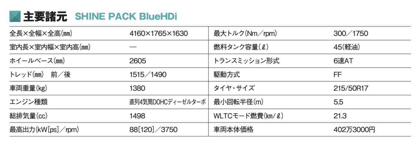それまでは1.2ℓ3気筒ターボだけだったエンジンも、マイナーチェンジ後に1.5ℓディーゼルを追加。1.2ℓターボのガソリンでも十分軽快に走ってくれたが、ディーゼルはさらに余裕をもって楽に走れるようになった。どちらのエンジンも音や振動が上手く抑えられているから快適性も高い。欲を言えばディーゼルにはプジョー2008などと同じ8速ATを採用してほしかった。
