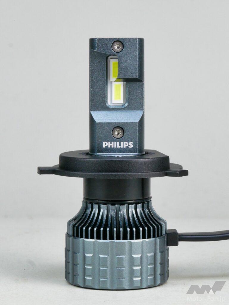 『アルティノン ラリー 3500HL』は、冷却ファンやドライバーユニットを内蔵したオールインワンタイプとなっており、純正ハロゲンと差し替えるだけで、手軽にLEDヘッドライト化できるこのLEDバルブ。その特徴は、フィリップスならではの優れた配光パターンや耐久性はそのままに、同ブランド史上、最高値となる5200ルーメン(H4は3400/5000ルーメン)という圧倒的な明るさを実現したこと。純正ハロゲンバルブと比べて最高照度は約4倍となっており、夜間のドライブに確かな安心感を提供してくれる。