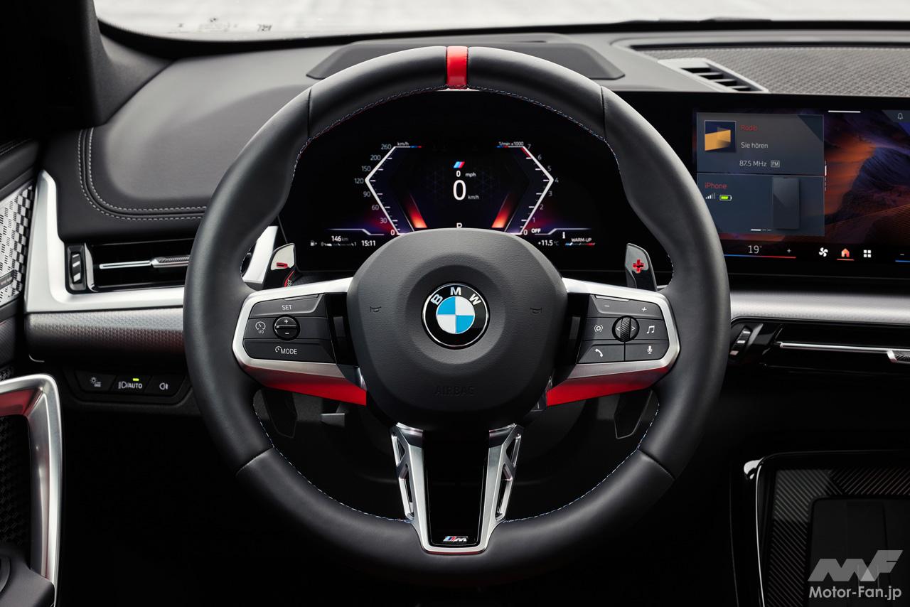 一方インテリアでは、Mペダル、パドルシフト付きMレザー・ステアリングホイール、照明付きMスポーツシート、Mドア・シル・トリムなどによって、よりスポーティなキャビンを創出。他のX1モデルとは明らかに一線を画した仕立てとなっている。