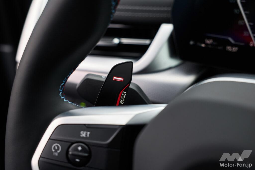 7速DCTには、左側のシフトパドルを1秒間引くことで、すべてのパワートレインとシャシーシステムを最もスポーティな設定に切り替えられる「Mスポーツブースト」機能が備わる。