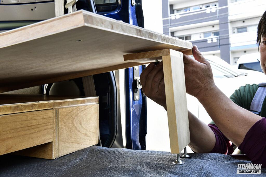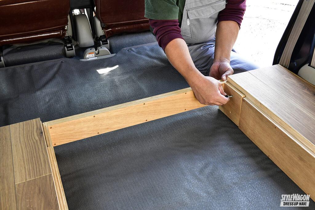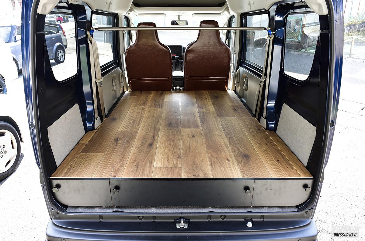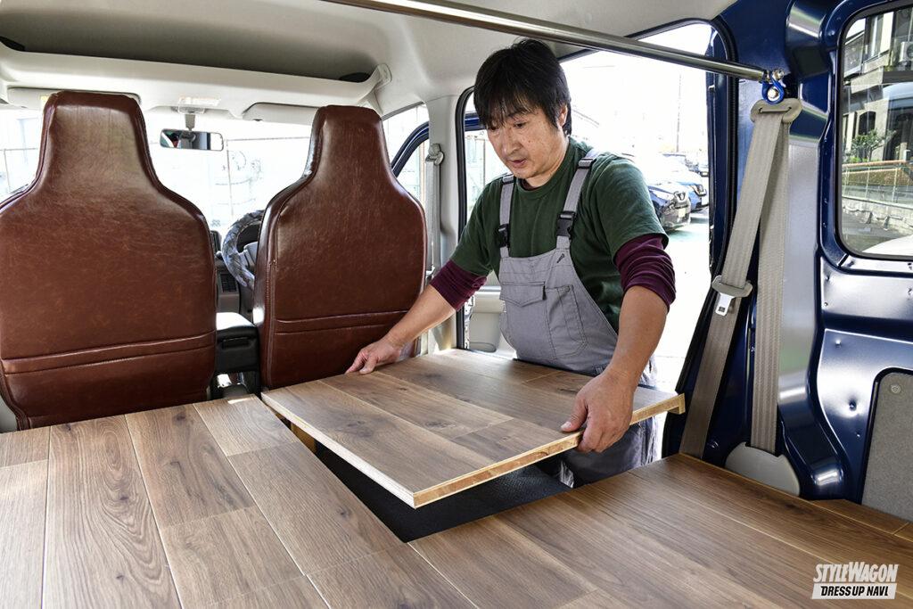 エブリイは軽自動車の規格ギリギリまで広げたボディ形状のおかげで、室内空間の広さはトップクラス。車中泊もできるほどだから、快適に眠れるベッドキットが各社から販売されている。シュピーゲルが販売しているプチトマベースキットは、工具を一切使うことなく簡単にフロアをフラットにできるアイテム。上面は味わいのあるフローリング仕上げだから、キャンプ場など自然豊かな場所にマッチ。4分割構造となっており、簡単に分解できるから後部座席をスムーズに元に戻せる。バラした部品は後部の収納にしまえる。市販のマットレスなどを敷くことで快適に眠れるが、ベースキットと同じ型状のマットがセットになったプチトマキットも販売している。
