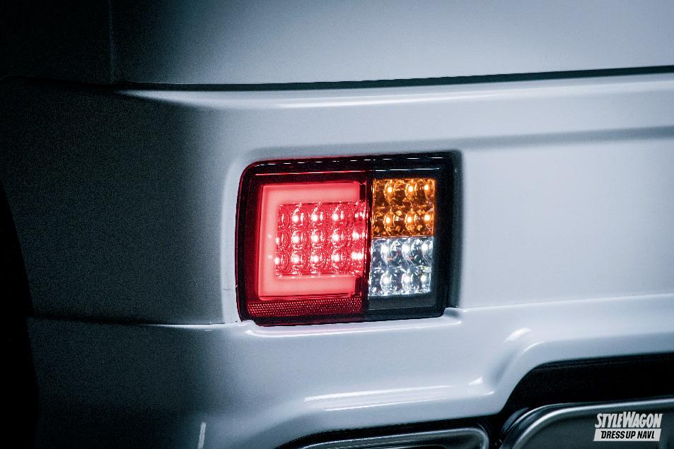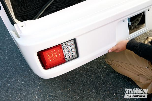 リアビューのイメージチェンジの第一歩として、装着するユーザーが非常に多いのがLEDテールランプ。ライツのLEDテールも人気商品のひとつで、ブレーキはもちろんウインカーとバックランプもLEDになっているので光らせた時のインパクトは非常に強烈。さらにスモール連動で光る、コの字型の3Dライトバーも内蔵。反射板も付き、安全性まで配慮されている。今回はバンに取り付けたが、ワゴンの場合もほぼ同様の作業になるため参考にして頂きたい。