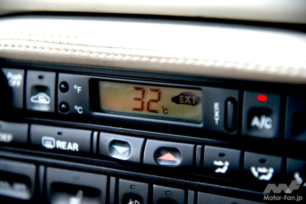 そんな折、愛知県岡崎市にあるロッキーオートさんを取材するためXK8で向かった。400キロほど走るうちの大半が高速道路だったためか、エアコンは快調。取材を終えた足で今度は大阪にあるスピードフォルムさんを取材するため、大阪入りして前泊する予定。するとやはりやってきた。エアコンが次第に効かなくなり、ついには温風しか出なくなった。日が暮れていたこともあり、窓を全開にして走っていれば我慢はできる。問題は次の日の帰路。気温が体温近くまで上昇するなか、500キロ以上ある道のりを走っていると、またしてもエアコンが効かなくなる。ここでオートではなくマニュアルにして温度をLowのままにすると、エアコンが効かなくなるまでの時間が多少伸ばせることを発見。だが根本的な解決にはなっていない。