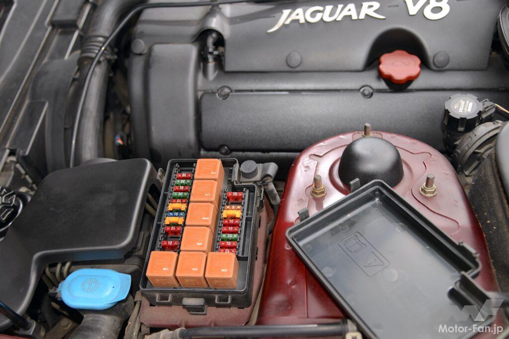 症状が出ないことには診断のしようもない。ひとまずエアコンの配管から圧力を測定しつつ、エアコンガスを若干補充してみる。エアコントラブルの診断として、XK8の場合エンジンルーム左前にあるコンプレッサークラッチの作動音を聞き分ける。クラッチが作動すると軽い音とともに冷風の回路が開く構造。またコンプレッサークラッチが作動する条件として、ラジエターに2機ある電動ファンが正常に機能していることが挙げられる。さらにエアコン回路に使われているリレーも疑わしいため、予備のリレーと交換してみる。これらを観察しつつも、この日は何事も起きなかったため仕方なく帰路につくこととした。