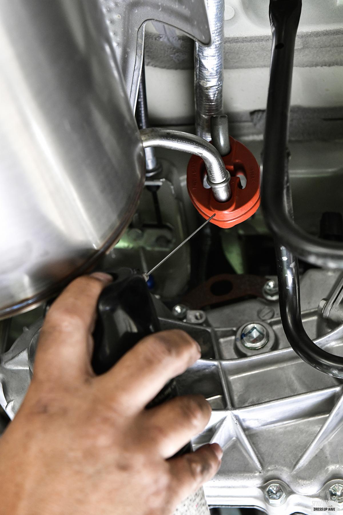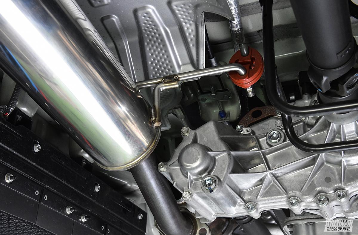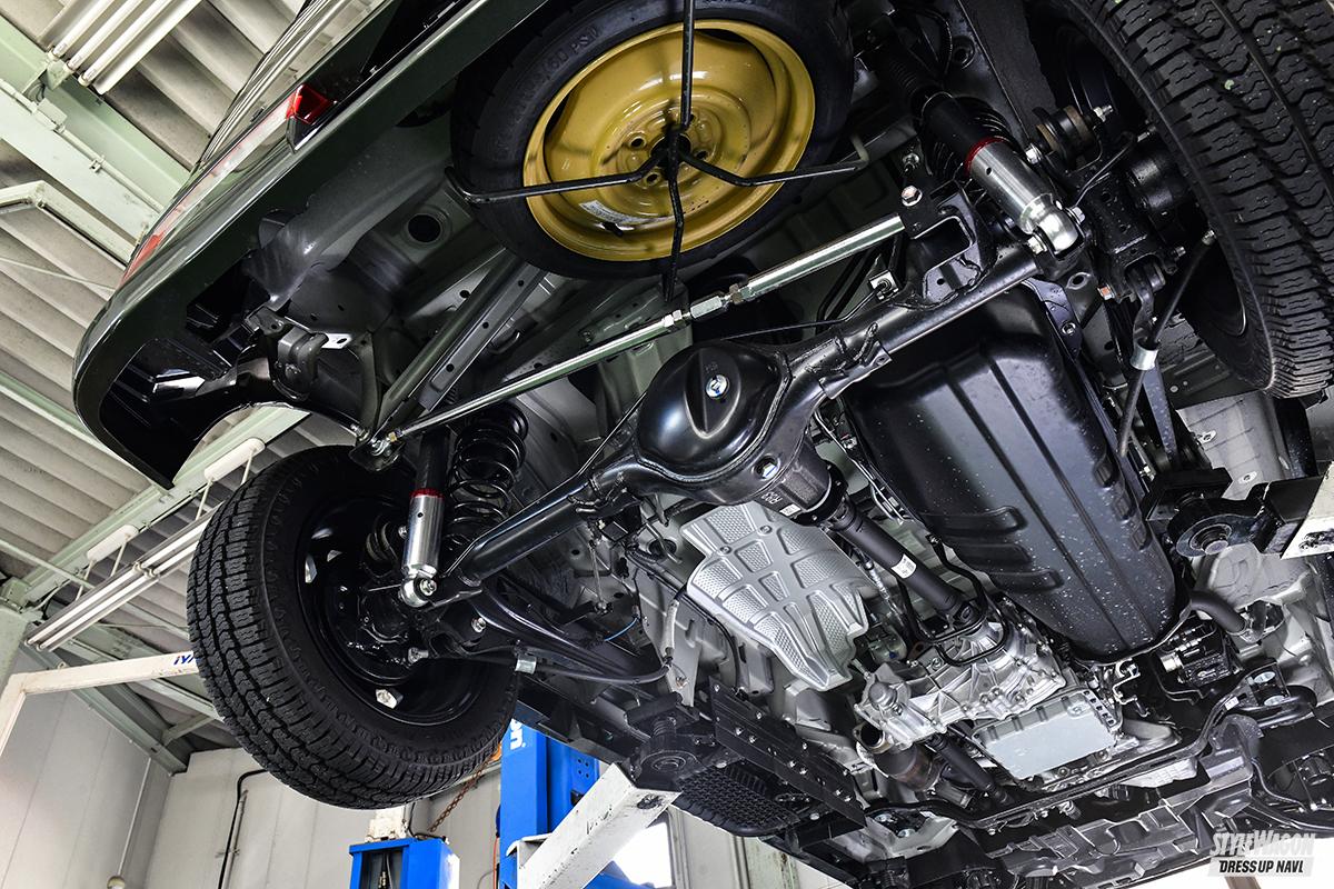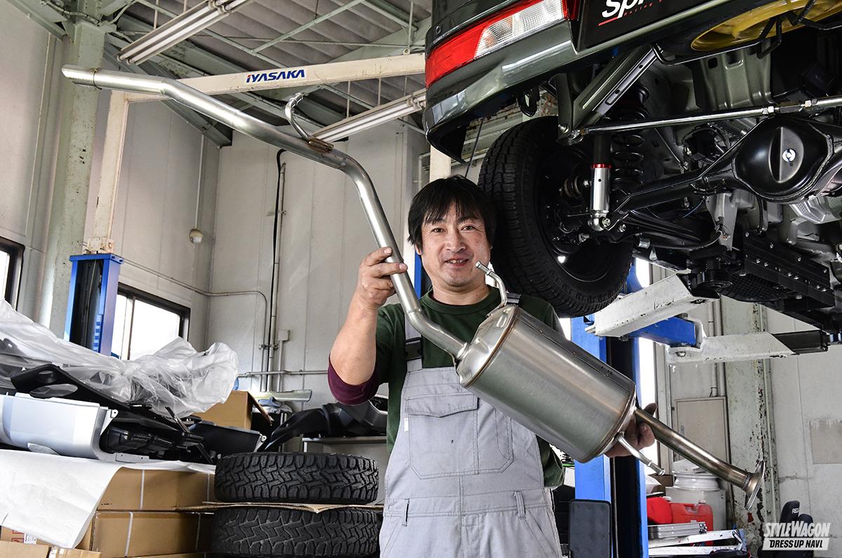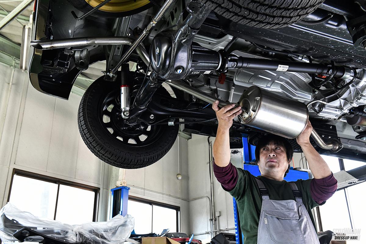社外マフラーに交換することで排気効率やビジュアルの向上、そして純正にはない上質なサウンドが得られるなどそのメリットは大きい。しかし年式が新しい現行エブリイは、法改正の兼ね合いでマフラー交換のハードルが高くなっている。しかしシュピーゲルのレベルサウンド304は車検に通る条件となる加速騒音試験をクリアした、JQR認証を取得済み。だから車検も問題ないし、安心してマフラーを交換できる。純正マフラーは中間からリアまで1本モノなので、交換する時はできればリフトに上げて十分なクリアランスを確保した方が取り外しやすい。また年数が経っているクルマはボルトが固着していることがあるため、事前に潤滑剤をたっぷり吹いておこう。