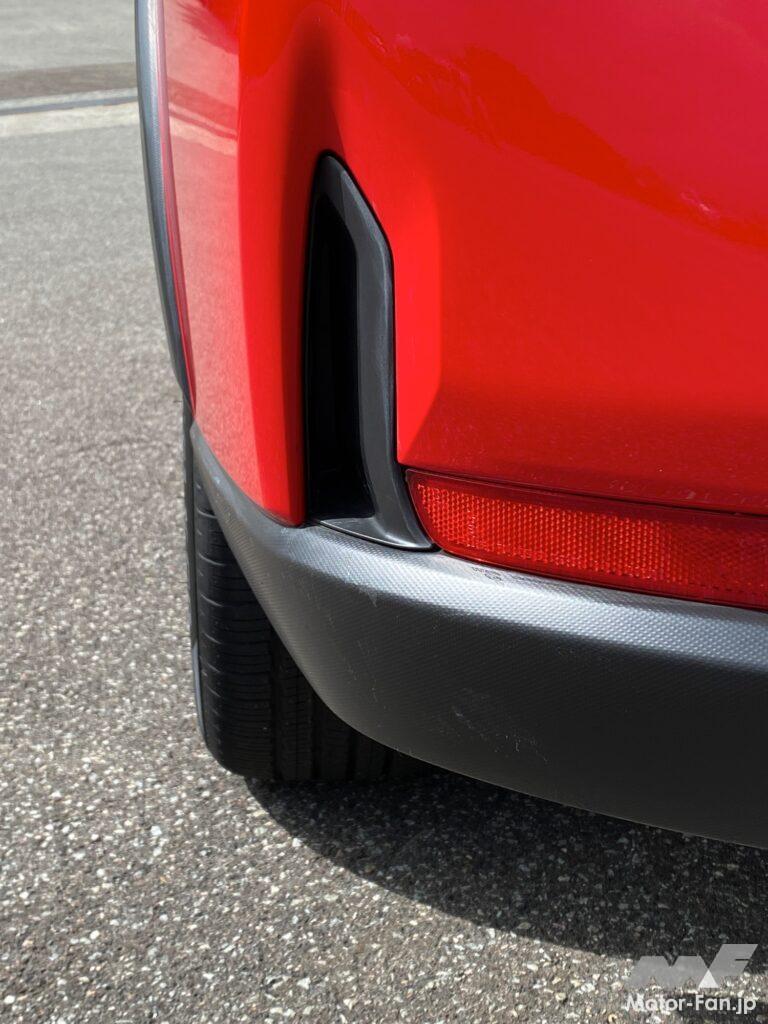 リヤバンパーも従来のレヴォーグとは違う。ボディ色の面積を増やした。その狙いは、「SUVにとってはリヤビューの縦方向の厚み感が大事。変更したのはバンパーだけだが、そこに厚みを見せることにこだわった」とのことだ。
