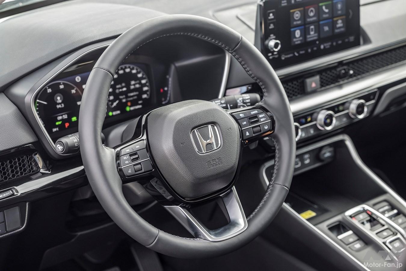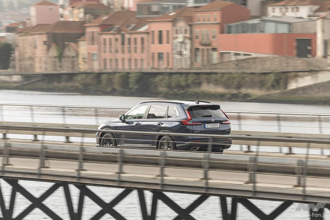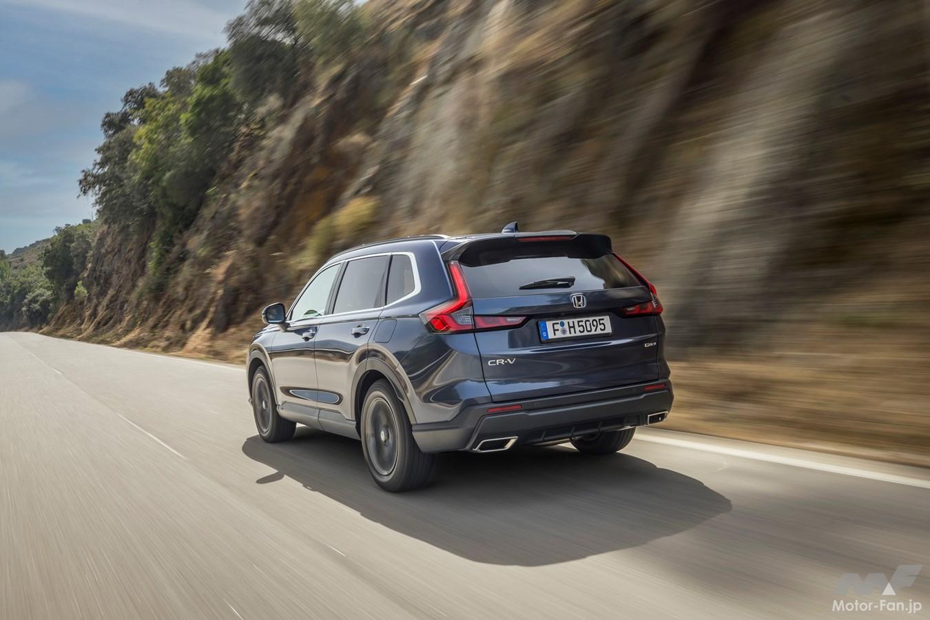 従来のCR-Vに比べてパワーが向上したことで、より確実な加速フィールと応答性が改善され、0-100km/h加速は2WDモデルで9秒、AWDモデルで9.4秒となり、最高速度は2WDモデルで194km/h、AWDモデルで187km/hを達成している。性能の向上にもかかわらず、e:HEVシステムは効率性の向上も実現しており、2WDは16.9km/ℓ、4WDは14.9km/ℓを誇る。