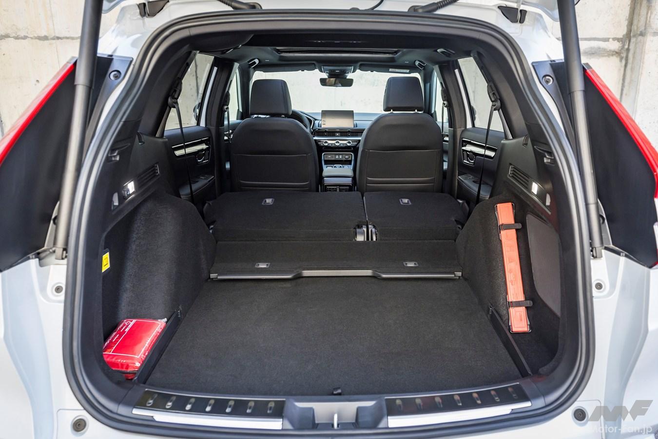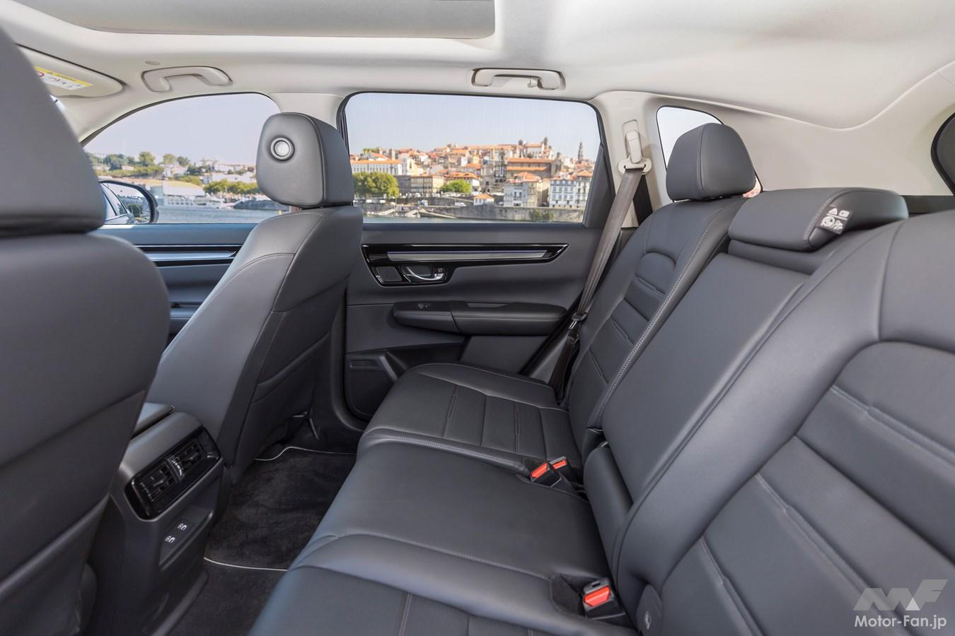 リヤでは、クラス最高のリヤ・レッグルーム(前モデル比16mm拡大)を実現し、DセグメントSUVの広々とした空間を実現している。リヤシートのリクライニングは、前モデルのCR-Vより10.5°拡大されている。