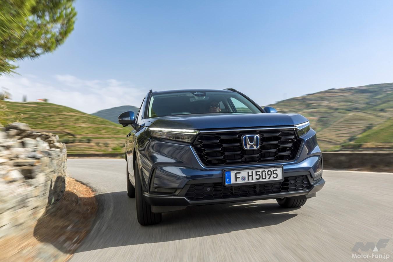 欧州市場において新型CR-Vは、フルハイブリッド(e:HEV)パワートレイン、または欧州ホンダ初となるプラグインハイブリッド(e:PHEV)オプションのいずれかを選択でき、ダイナミックなパフォーマンスと効率性を幅広いレンジで実現する。このパワートレインのラインアップの拡充は、電動化に対するホンダのマルチパスウェイ・アプローチを象徴するものであり、幅広いラインナップを提供している。