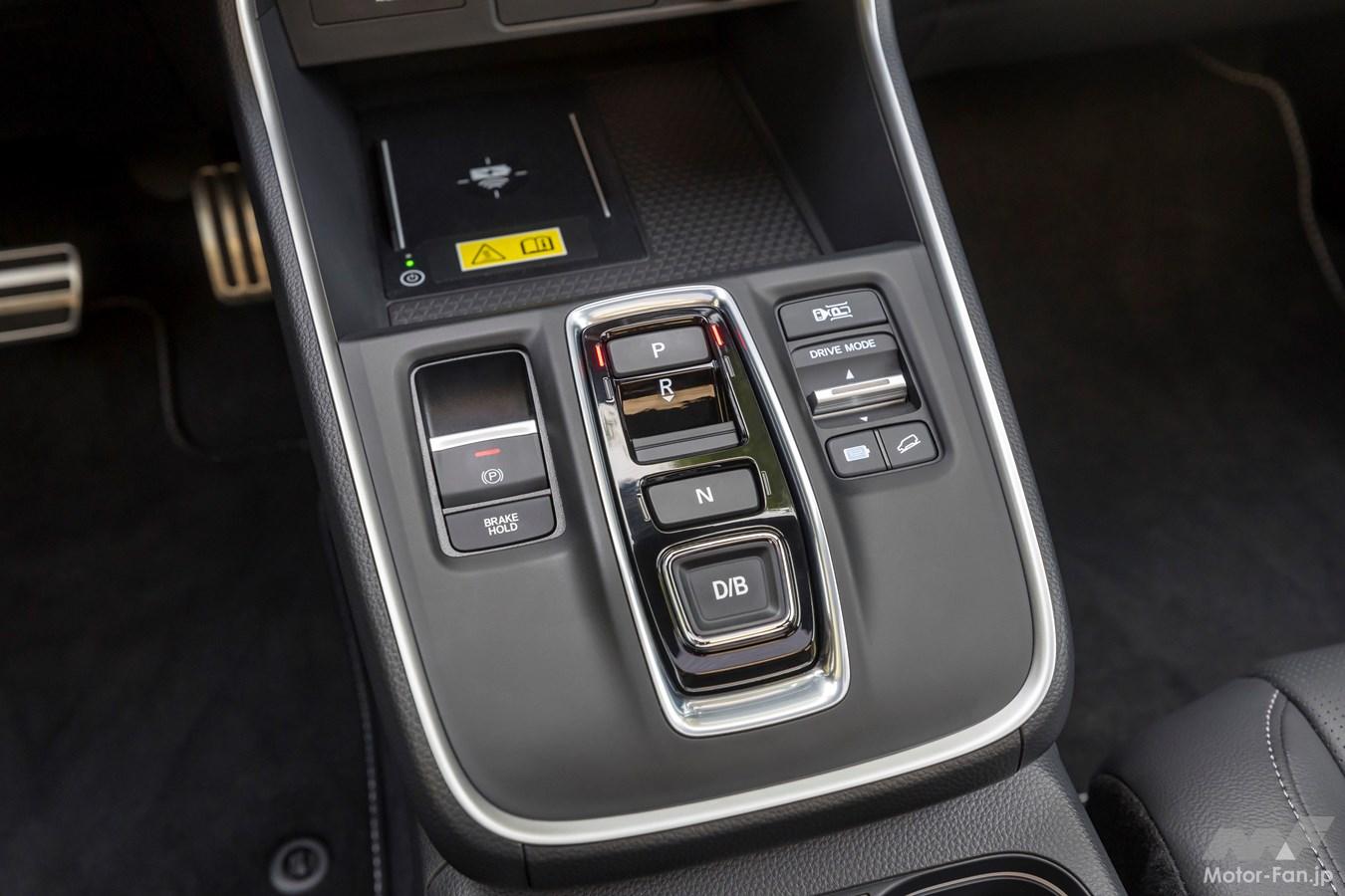 プラグインのe:PHEVは、ホンダのe:HEVパワートレインの実績をベースに、大幅に大型化された17.7kWhのバッテリーと、軽量で高出力の車載充電器が搭載されている。この電気アシストの向上により、エンジン回転数を従来よりも大幅に低く抑えることが可能となり、さまざまな速度域での騒音レベル、洗練性、燃費がさらに向上している。また、EVのみの航続距離も82kmとなっている。