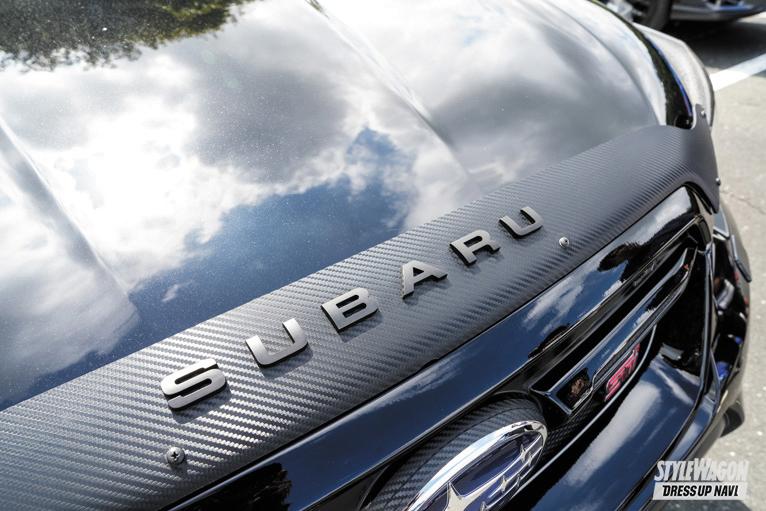 abara さんのお気に入りカスタムポイントは、世界に1本しかないシムスのマフラー。元の設定はチタンカラーしかないのだが、特注でシルバータイプを製作してもらった。また、プローバのリヤキャリパーのステーも特注品!オフ会前日に完成したIPFのフォグライトバーは、バンパー内側にすっきりと収められており、自然な仕上がりで大満足だそう。DIYではバグガードにカーボンシートを貼り、その上に「SUBARU」のエンブレムをバランスよく配置するなど、センスを感じられるコーディネイトも見どころだ。