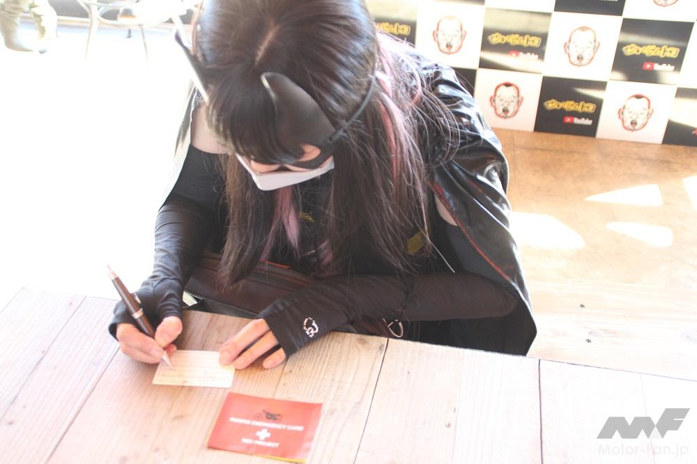 バイク女子部グッズ販売や北海道在住女性ライダーRikoさんがクラウドファンディングで資金を利用して作成した「ライダーズエマージェンシーカード」の配布、東京都大田区・有限会社三和製罐さん作「ナンバーチャーム(ナンバープレートに付けられる初心者マーク)」の協賛も。