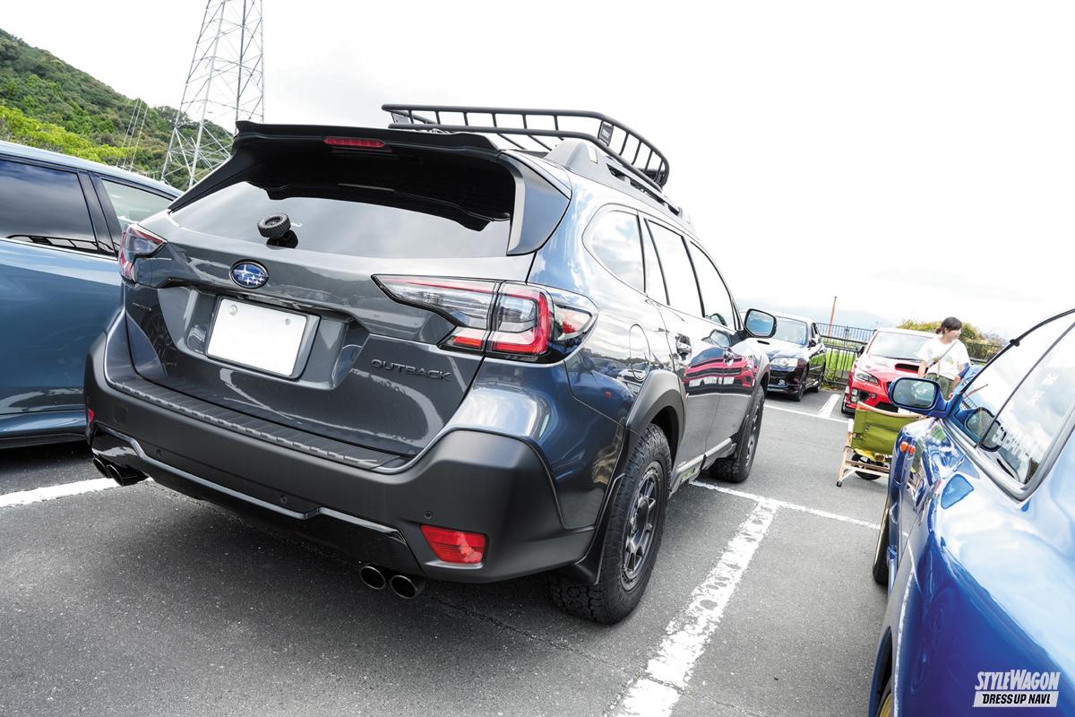 おそらく日本のスバル車の中で、これを履いているのは自分だけ!という自慢のホイールは、アメリカから取り寄せたアイテムだ。リヤウイングもアメリカのメーカーからなんとか手に入れたレア物がついており、シンプルなデザインが気に入っている。リヤのワイパーを取り外した部分には、ラジコンタイヤを装着。アウトドアっぽい面白みが欲しいなと、試しにはめてみたところジャストフィットしたアイデアパーツである。マフラーは、純正より上向きの角度をつけて製作を依頼したワンオフ品。