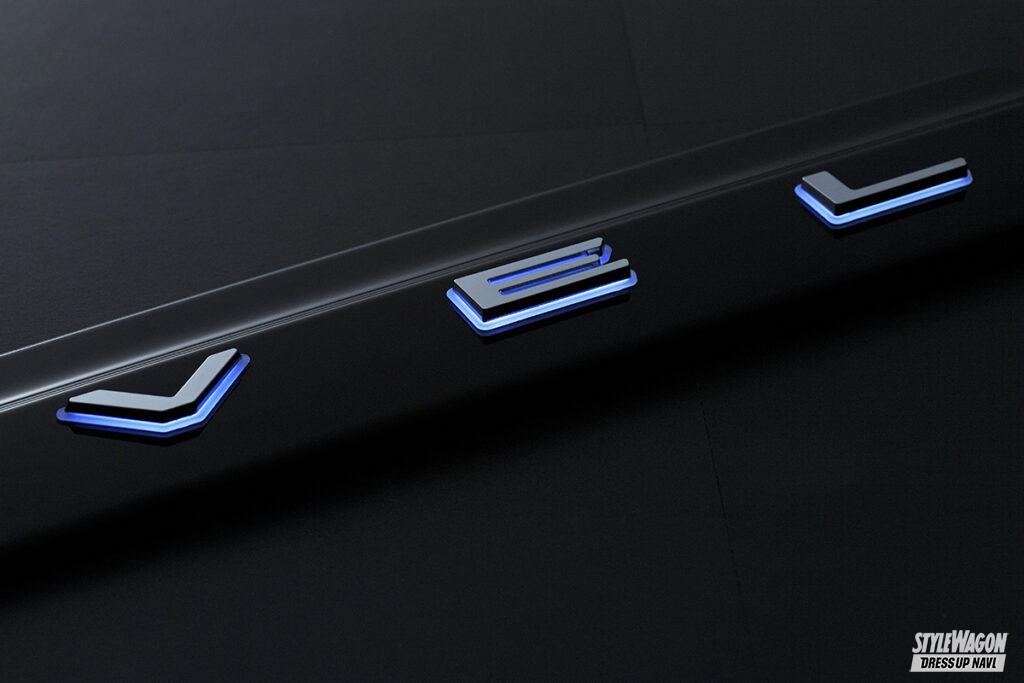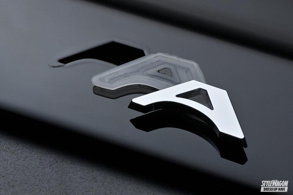 ガーニッシュはPPE素材を採用。高精度で違和感の無い仕上がりと、非点灯時の純正然とした佇まいに大きく貢献する。これに、アルファベット型レンズ、高輝度LED、発光モールがインストールされる。点灯すれば、明る過ぎない美しい光が、均一かつ自然に広がる優れモノ。すべて、自社工場で生産される日本製であることも付け加えておく。電源はテールランプから。装着に車両の加工は要らずリセール面でも有利だ。