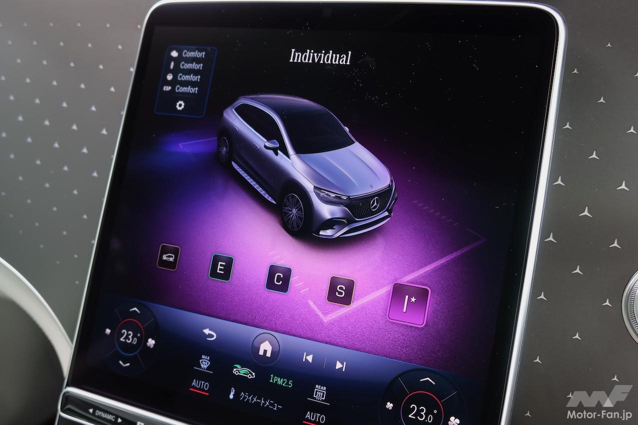 自分の意思ではなくシステムが判断して減速度をコントロールするので、自分の感覚と合わず「?」となる瞬間がある。そのいっぽうで、先行車に近づきすぎない安心感はある。ダイナミックセレクトと同様、クルマと付き合いながら、自分に合ったモードを探し出すといいだろう。なにしろ白眉はDCUだ。メルセデス・ベンツのBEVに限った話ではないが、機能・効率面(ということは電費も含め)に関しては、最新モデルが最良と言えそうだ。