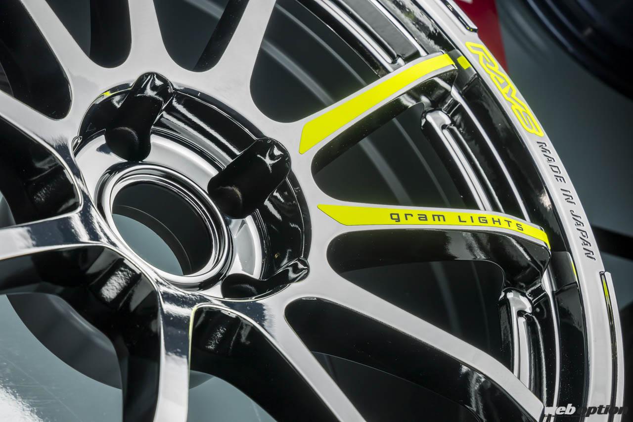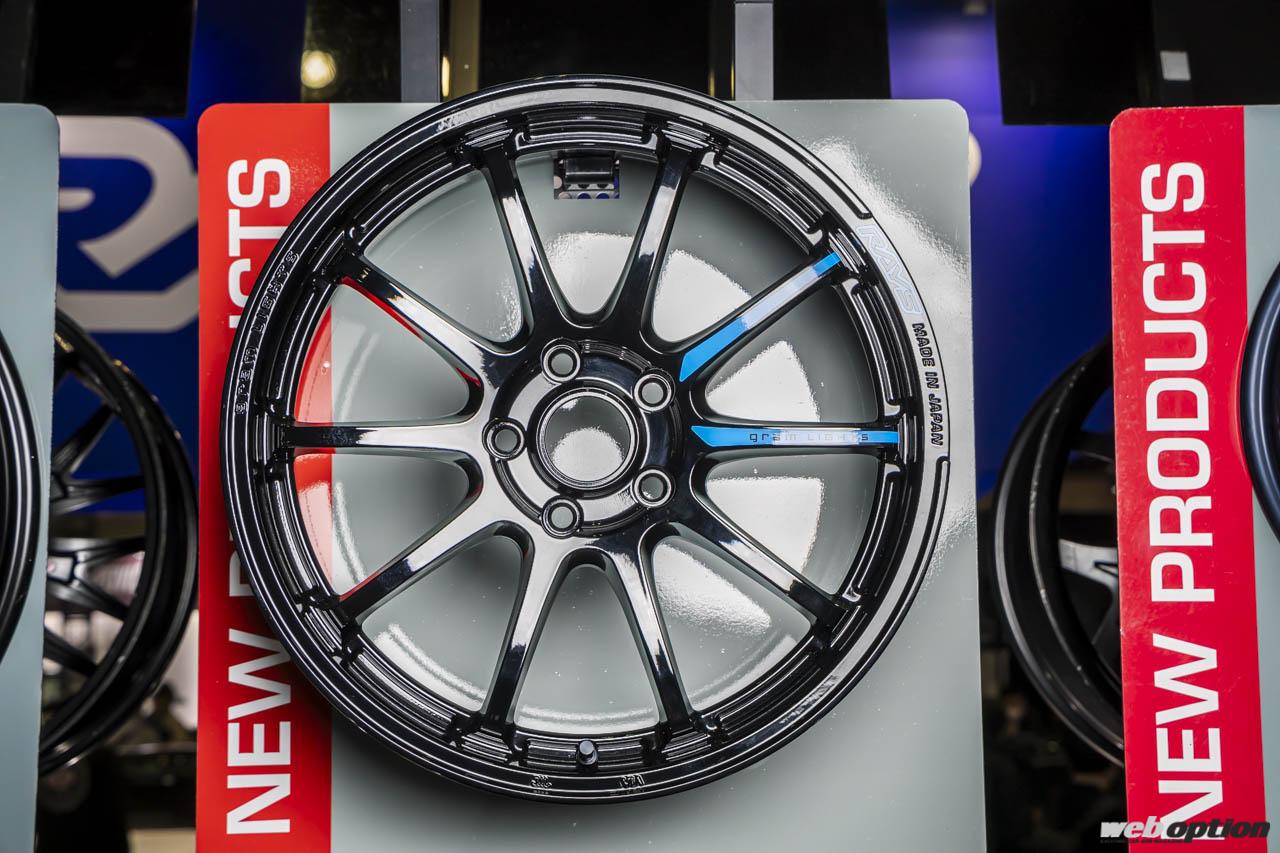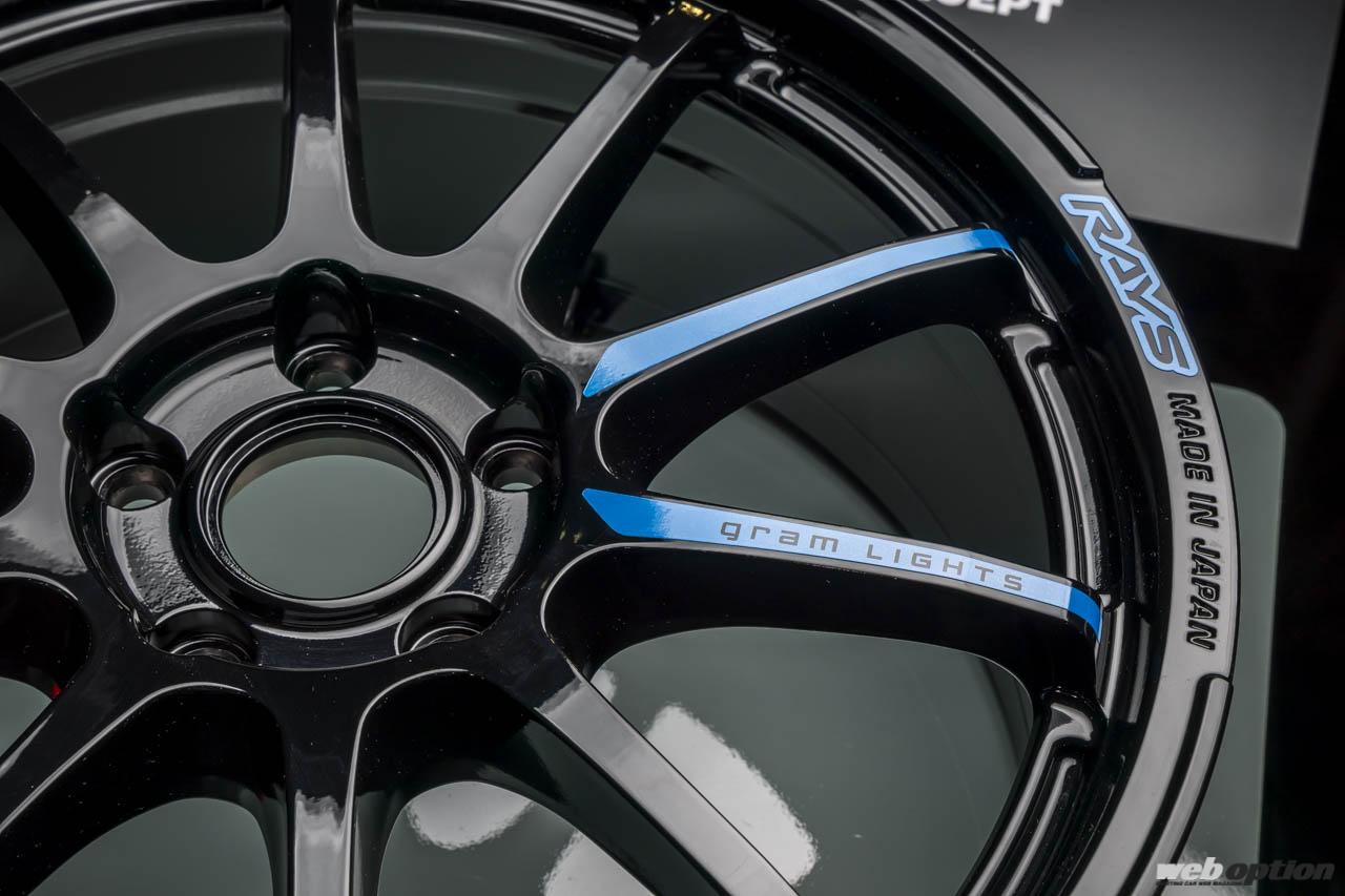 「57NR」には、主にコンパクトカー向けインチアップサイズをラインナップし、初めてホイール交換をするカスタマイズ初心者にも最適な「Spec M」を追加。カラーはグロッシーブラックで、ブルーのスポークステッカーを付属。リムのレイズロゴも同じブルーで彩られる。サイズは17インチと18インチ。