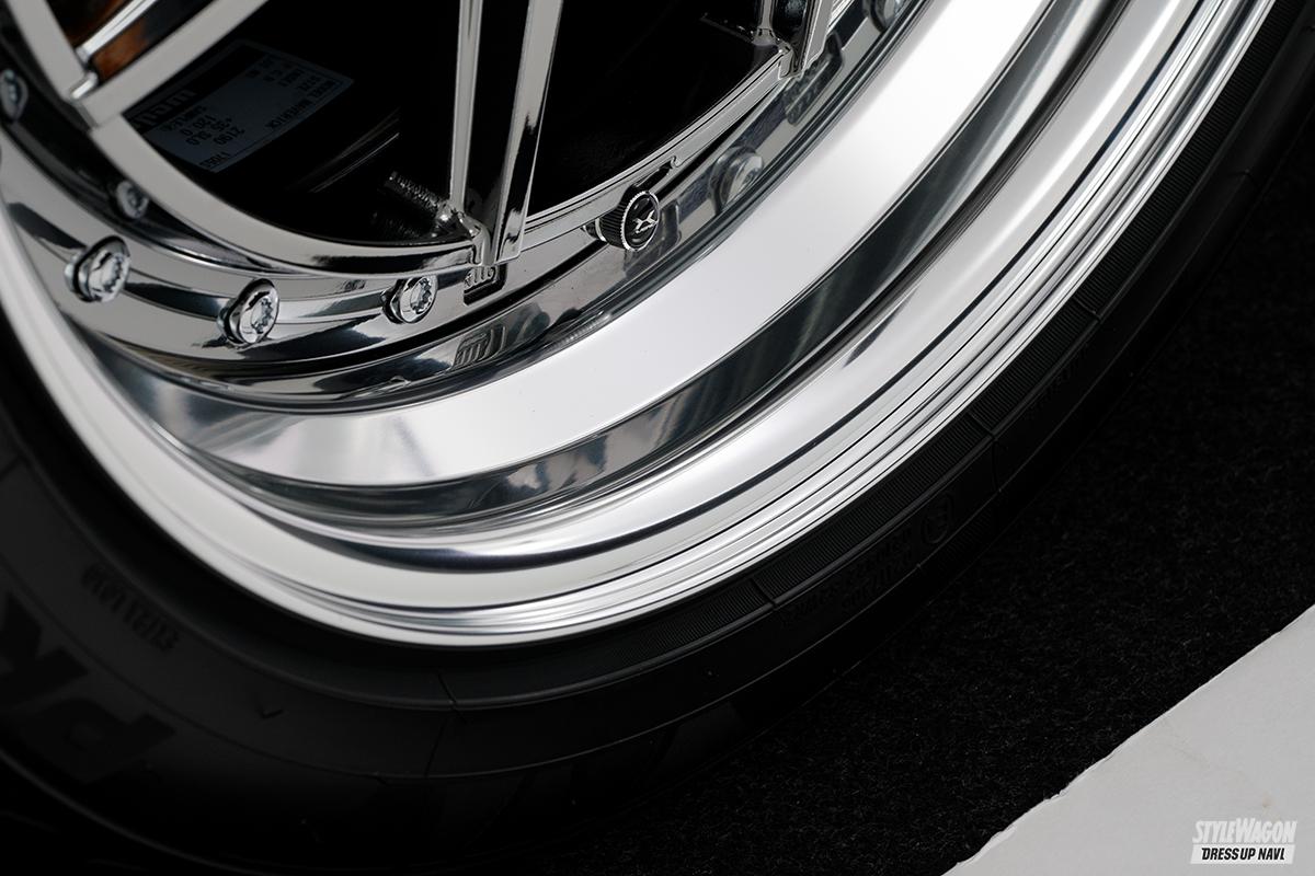 2ピース構造だから1㎜単位でのインセット指定が可能なのはもちろん、リムのみを色変えするなどカスタマイズをより深く楽しめる点もメリット。またこの2025年からはリバースリム作品で、フランジ形状を選択できるようになったのも大きな魅力。従来同様のカールフランジは大口径感を強調することができ、新設定のスーパーフランジリムであればクラシカルさやスポーティさが際立つ。オプションでブラッシュドリムを選択できるのもうれしい限り。