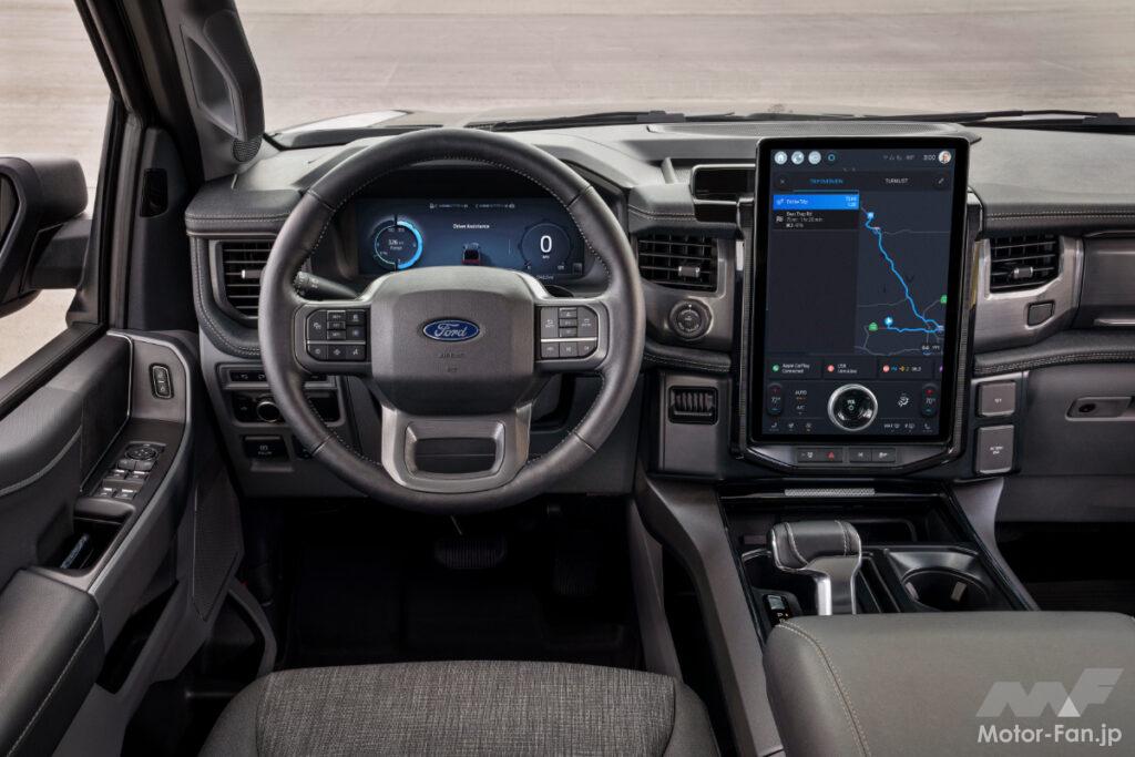 ハンズフリーで高速道路を走行できる「フォード・ブルークルーズ」は、ストレスの少ない、より楽しいドライブをサポートする。F-150ライトニング・フラッシュにはバージョン1.2が搭載されており、進路が確保されたらターン・シグナルをタップすることでハンズフリーで車線変更ができるレーン・チェンジ・アシストや、隣接する車線の車両から微妙に位置をずらしながら車線内を走行するインレーン・リポジショニングが含まれている。なお、このシステムはソフトウェア・アップデートにも対応している。