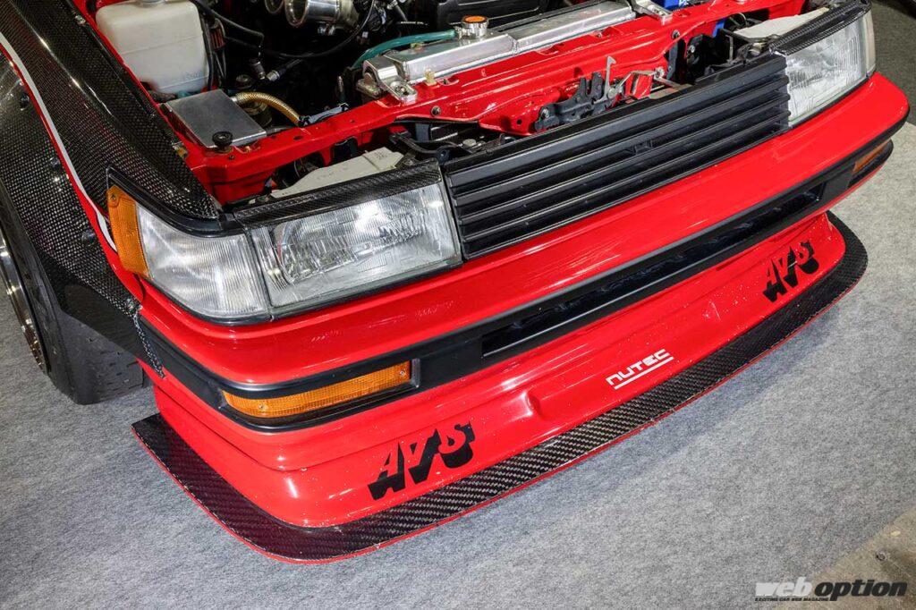 AE86チューニングの老舗“インパルス”のイメージリーダー的存在となっている、フルカーボンボディをまとったレッド×ブラックの「スーパーカーボンレビン」が、さらに進化して東京オートサロン2025の舞台に現れた。