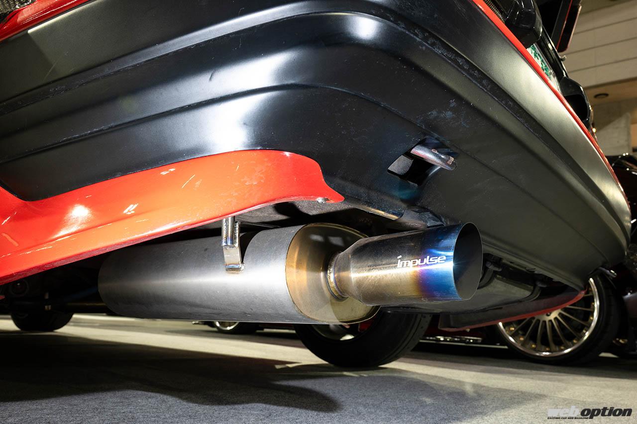 また、インパルスは自社に備えた各種金属加工機を駆使して製作する高精度・高性能なパーツ製作も得意分野。その際たる例がエキゾースト環境で、ベンチテストで性能検証を繰り返して製品化にこぎつけたEXマニホールドとチタン製のオリジナルマフラーが装着されていた。