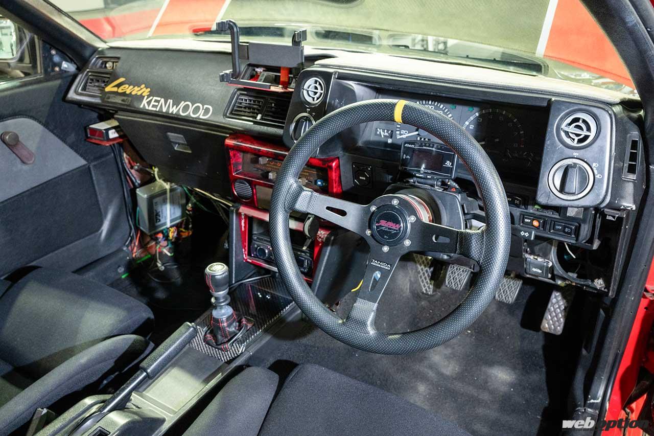 エンジンは排気量を1800ccに拡大したフルチューンの4A-G改5A-G仕様で、最高出力は220psを獲得。オルタネーターやラジエターのアルミ削り出しステー類も、近年インパルスで力を入れて開発を進めているパーツとなっている。