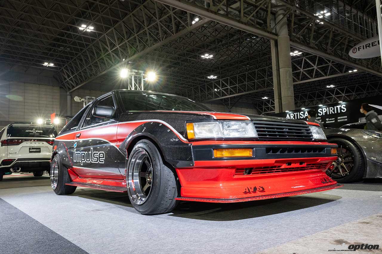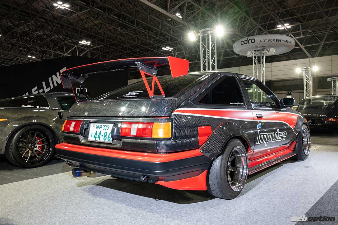 AE86チューニングの老舗“インパルス”のイメージリーダー的存在となっている、フルカーボンボディをまとったレッド×ブラックの「スーパーカーボンレビン」が、さらに進化して東京オートサロン2025の舞台に現れた。
