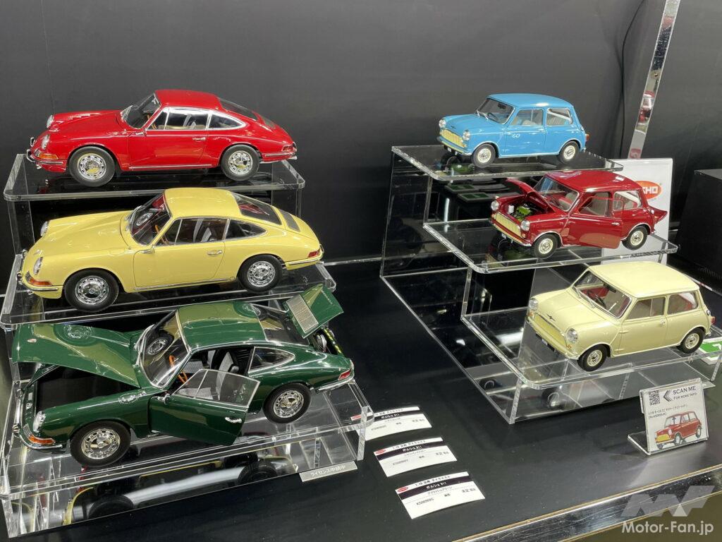 さらに1/18ダイキャストモデルではポルシェ911とモーリス ミニ Mk.1 1959も展示。ポルシェ911は発売日、価格は未定だが、ミニは2023年12月下旬発売予定で予価26400円(税込)。ミニは細部にわたり再現され、シートも可動する。各3色あり。