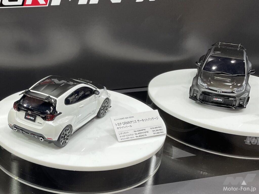 『ミニッツ』の中でも4輪駆動とドリフトタイヤで本格的なドリフト走行が楽しめる、ドリフト専用モデルのAWDシリーズのレディセットからは、日産 スカイライン GT-R N1仕様 (R32) ホワイトおよび日産 スカイライン GT-R ニスモ (R32) ガンメタリック(それぞれ2023年10月発売予定/予価29700円(税込))、トヨタ GRMNヤリス サーキットパッケージ ホワイトパールおよびガンメタリック(それぞれ2023年12月発売予定/予価30800円(税込))が展示されていた。