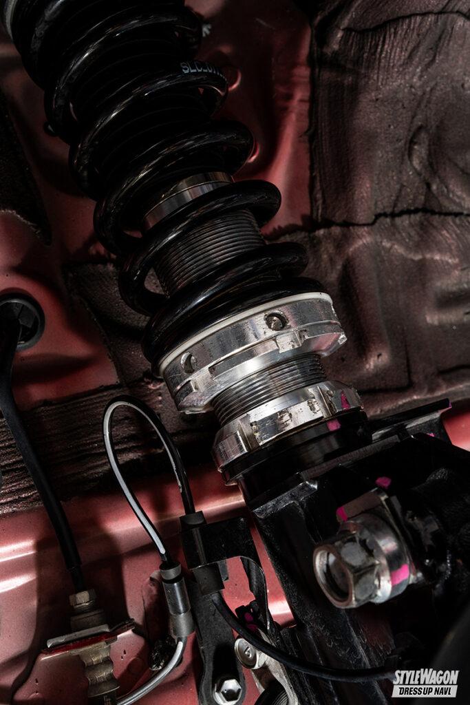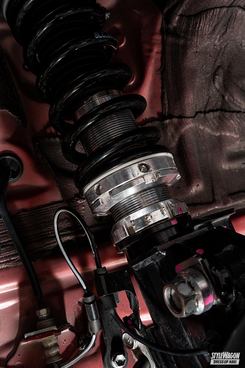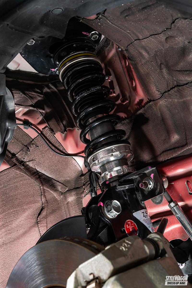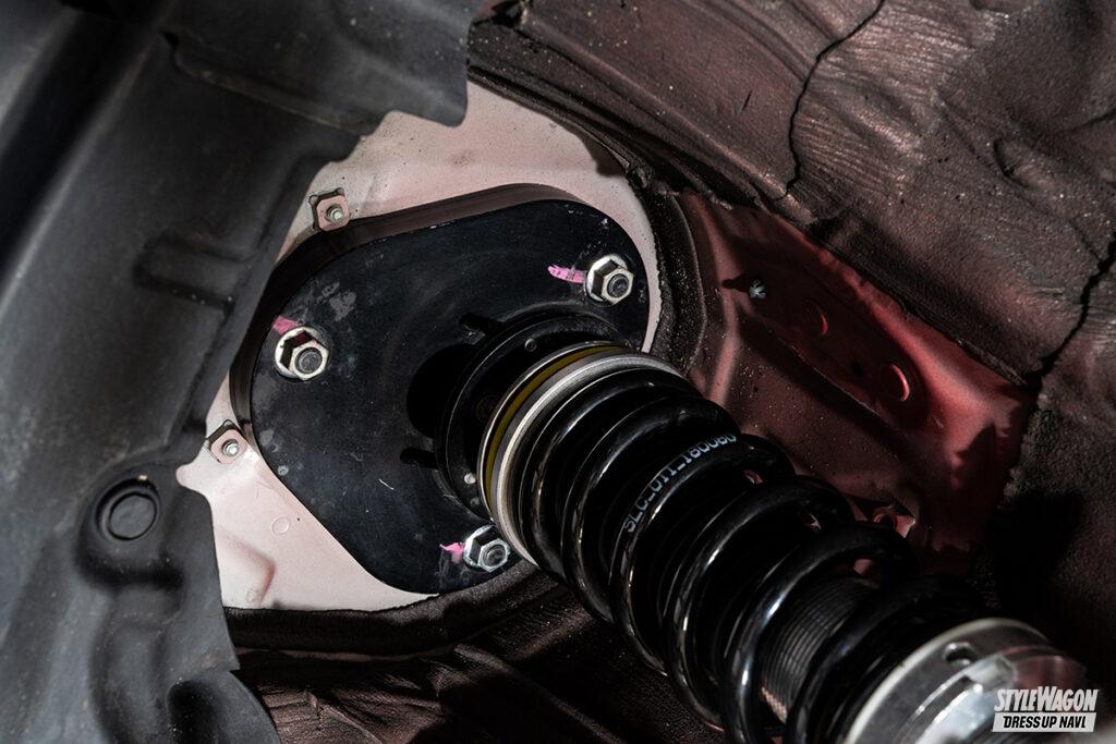 ベースにはリゲルダンパーを採用し、スプリングレートや減衰力だけでなく、ストローク量やケース長までイチから見直した。積極ストロークの中に頼もしさを込めたダンパーセッティング、独創構造のフロントピロアッパーを武器に、精悍なスタイリングが楽しめる低さと乗り心地の良さを引き出していく。なお、ユーザーそれぞれで異なる理想を満たすため、スプリングの仕様変更に対応したオプションも見逃せない。OGワークスを訪れればレートだけでなくハイトまで最適化したスプリングで仕上げてもらえる。妥協のないカッコ良さと乗り味の引き出しを図るなら加藤代表のセットアップノウハウも味方につけていこう。