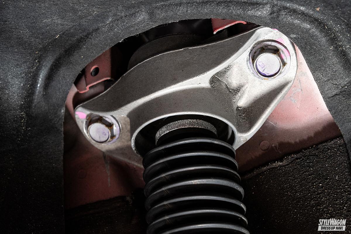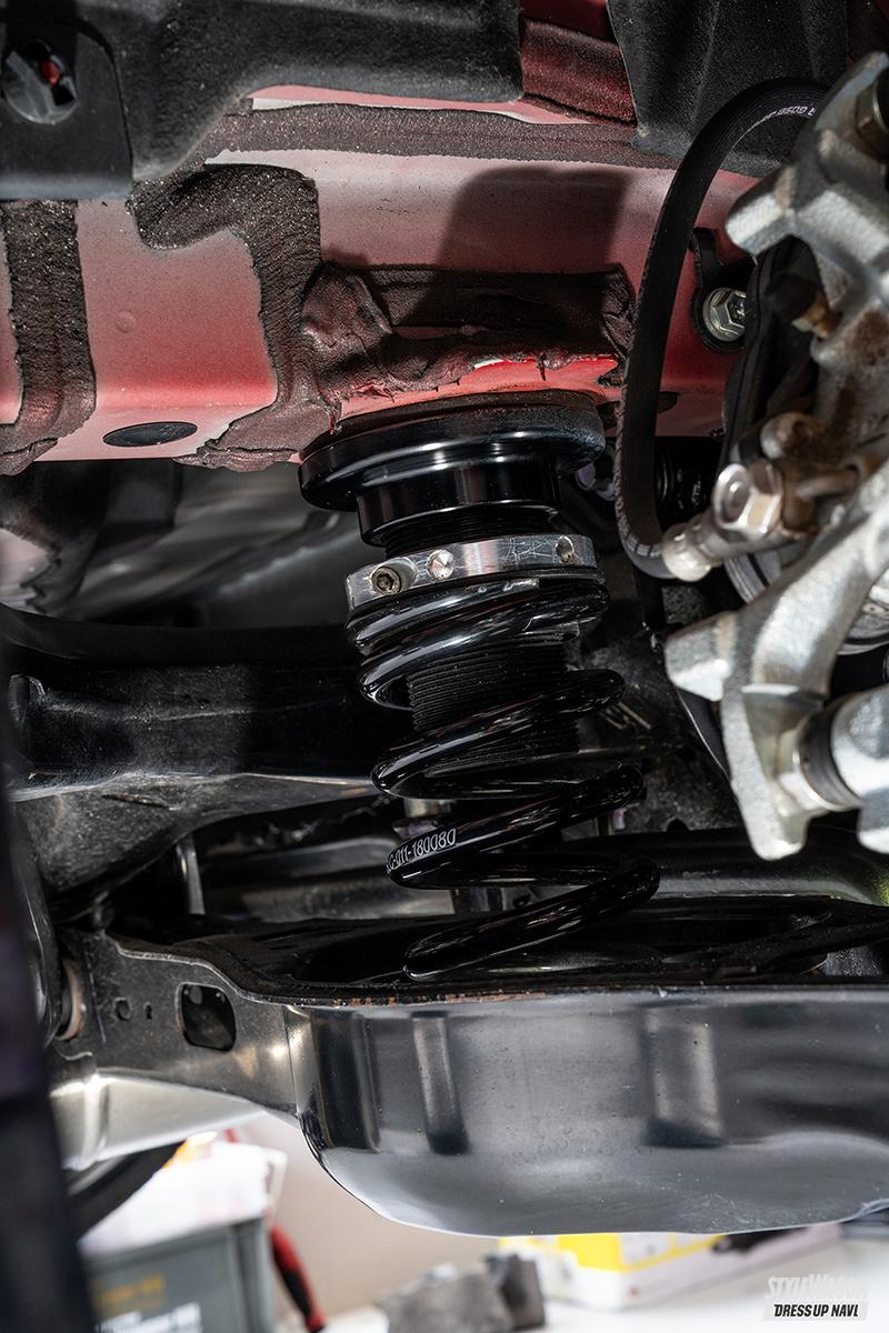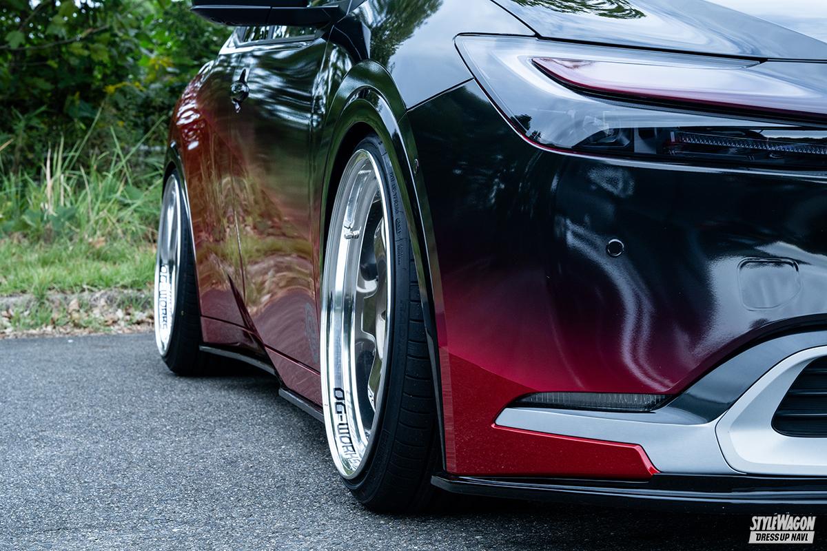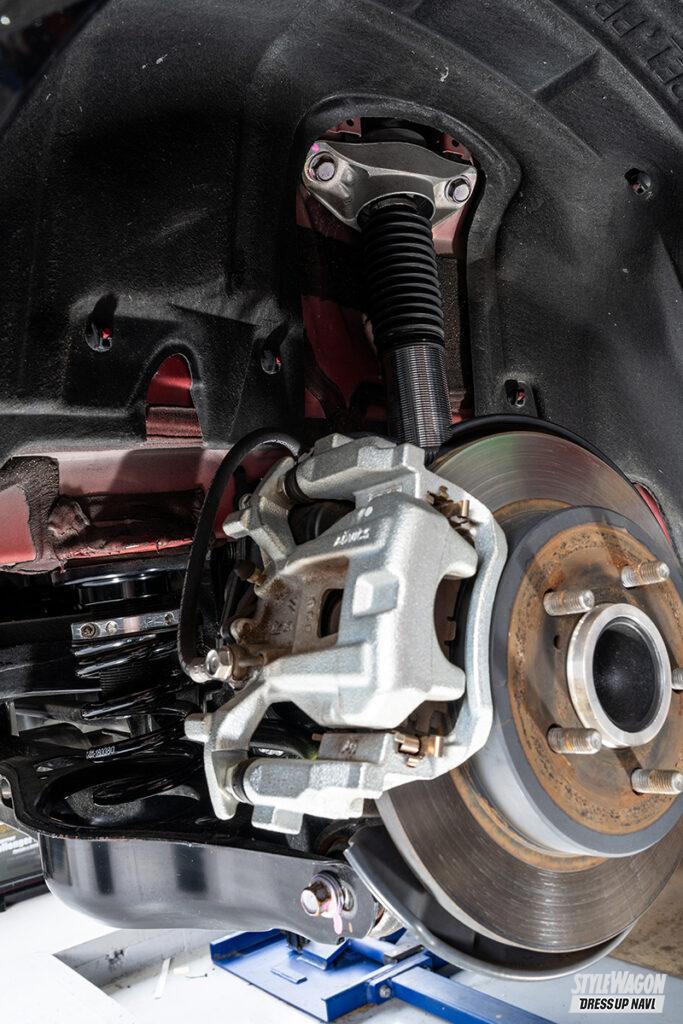 ベースにはリゲルダンパーを採用し、スプリングレートや減衰力だけでなく、ストローク量やケース長までイチから見直した。積極ストロークの中に頼もしさを込めたダンパーセッティング、独創構造のフロントピロアッパーを武器に、精悍なスタイリングが楽しめる低さと乗り心地の良さを引き出していく。なお、ユーザーそれぞれで異なる理想を満たすため、スプリングの仕様変更に対応したオプションも見逃せない。OGワークスを訪れればレートだけでなくハイトまで最適化したスプリングで仕上げてもらえる。妥協のないカッコ良さと乗り味の引き出しを図るなら加藤代表のセットアップノウハウも味方につけていこう。