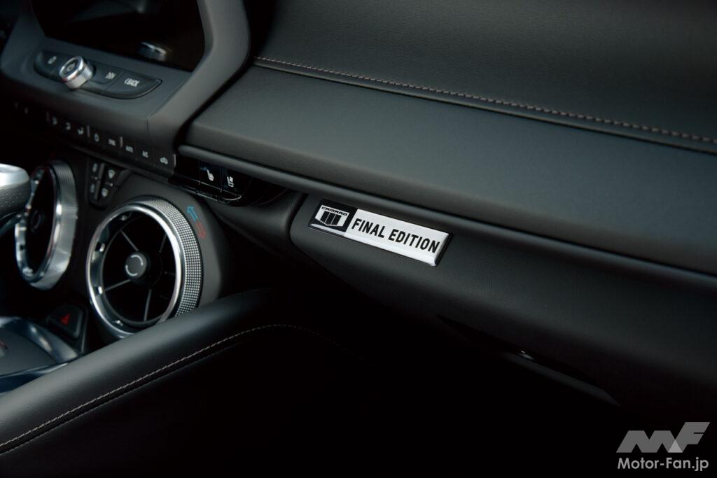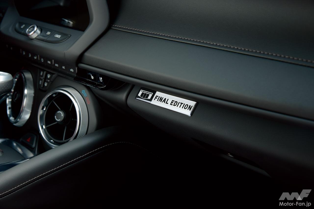 「ファイナルエディション」は、6.2ℓV型8気筒エンジン(453ps/617Nm)と10速ATを搭載する、力強いフロントマスクが魅力の「カマロ SS」がベースで、ブラック(30台)とサミットホワイト(20台)の2色のボディカラーを設定。