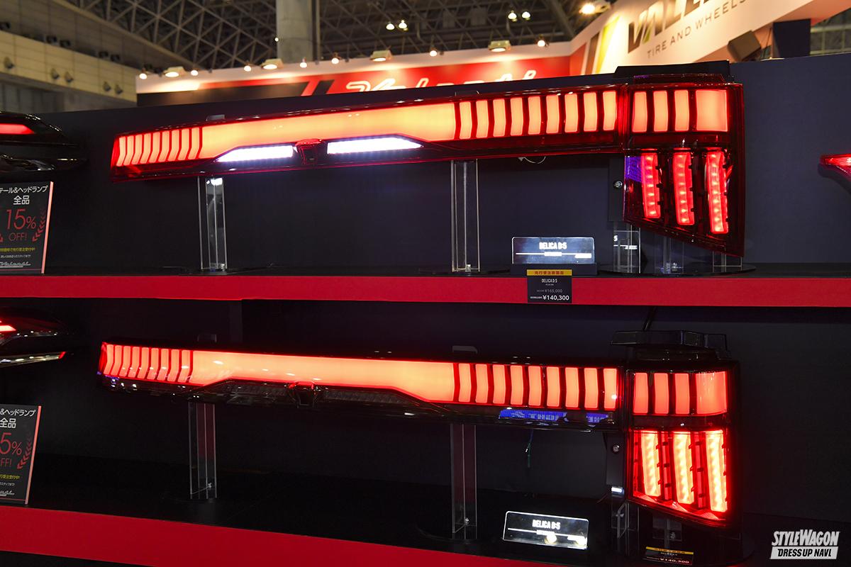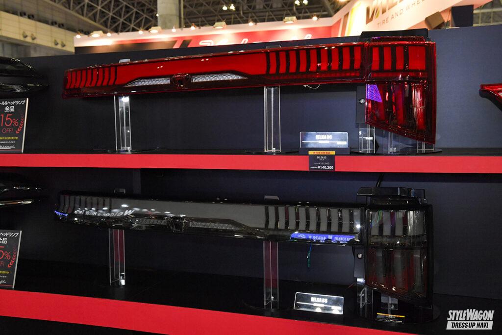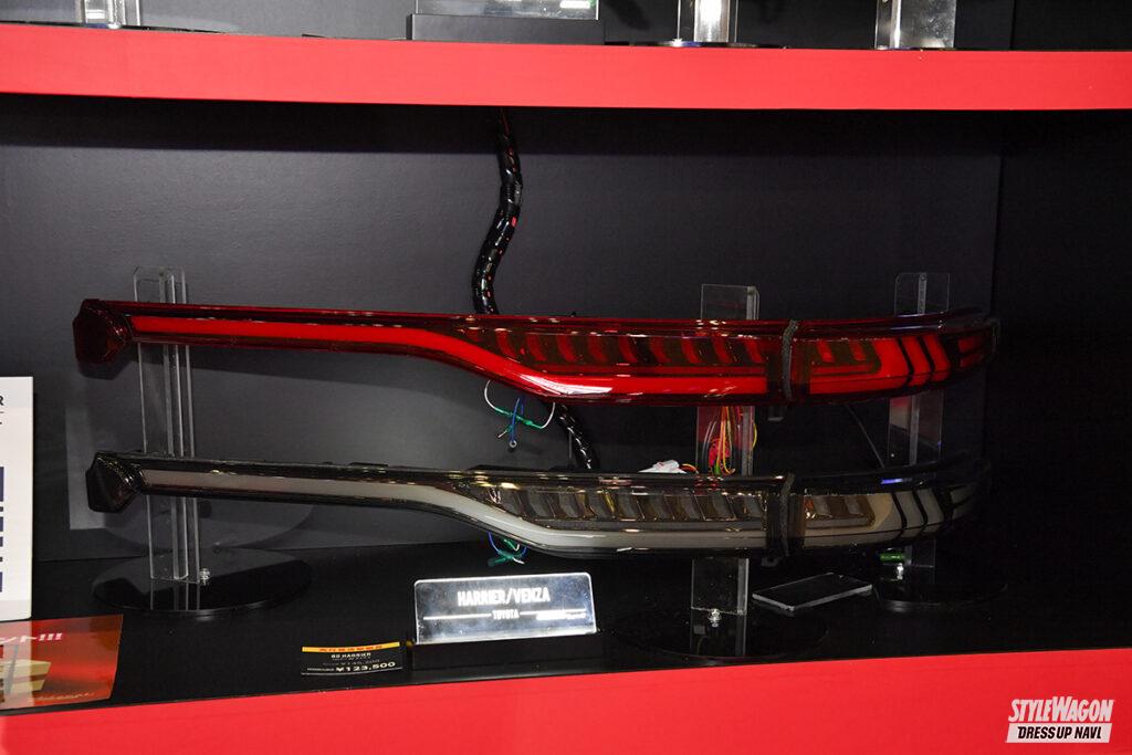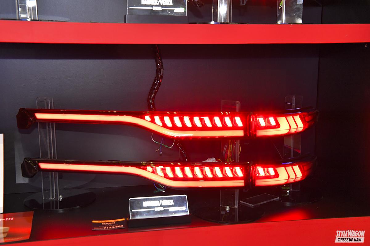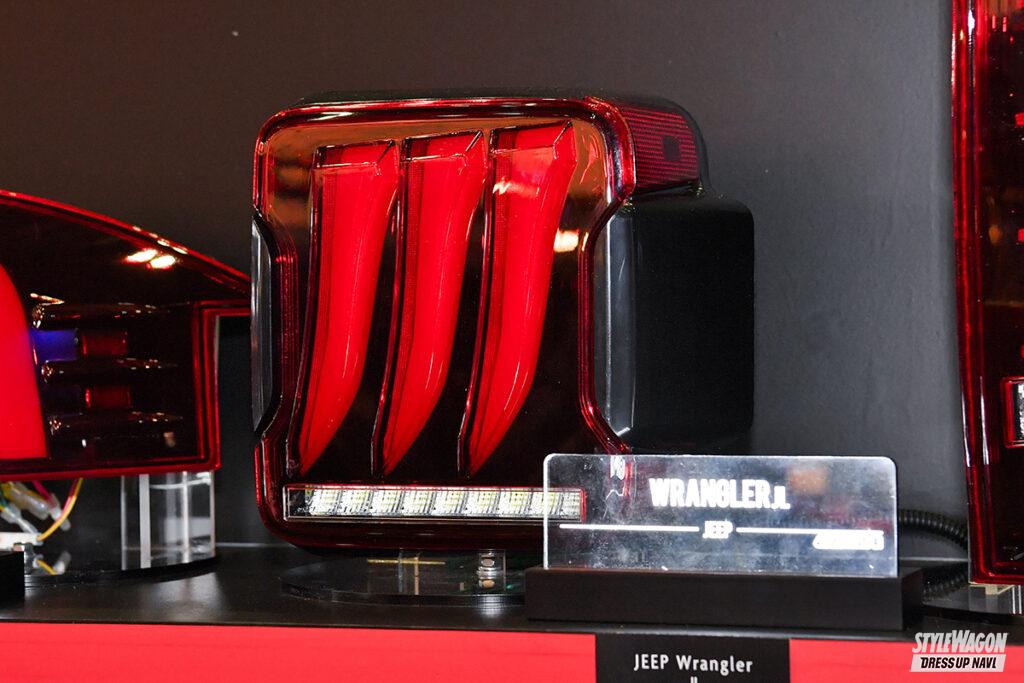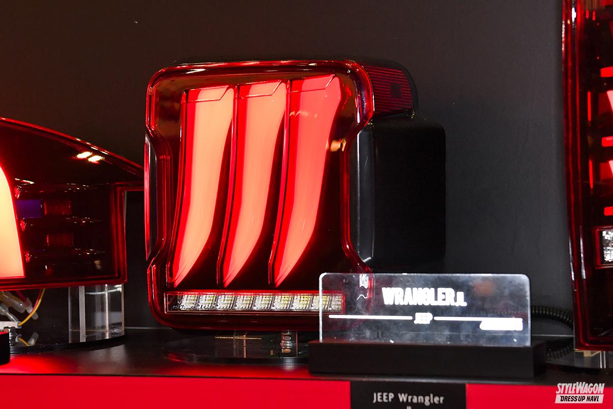 そしてジープ・ラングラー用。ヴァレンティは外車用テールも積極的に手掛けていることで知られているが、その最新作が、昨今大人気となっているラングラー。先のハイエース用テール「Ω「λ」を彷彿とさせる、縦ライトバーが3本入っている。参考出品という形であったものの、近い将来正式に発売されるはず。