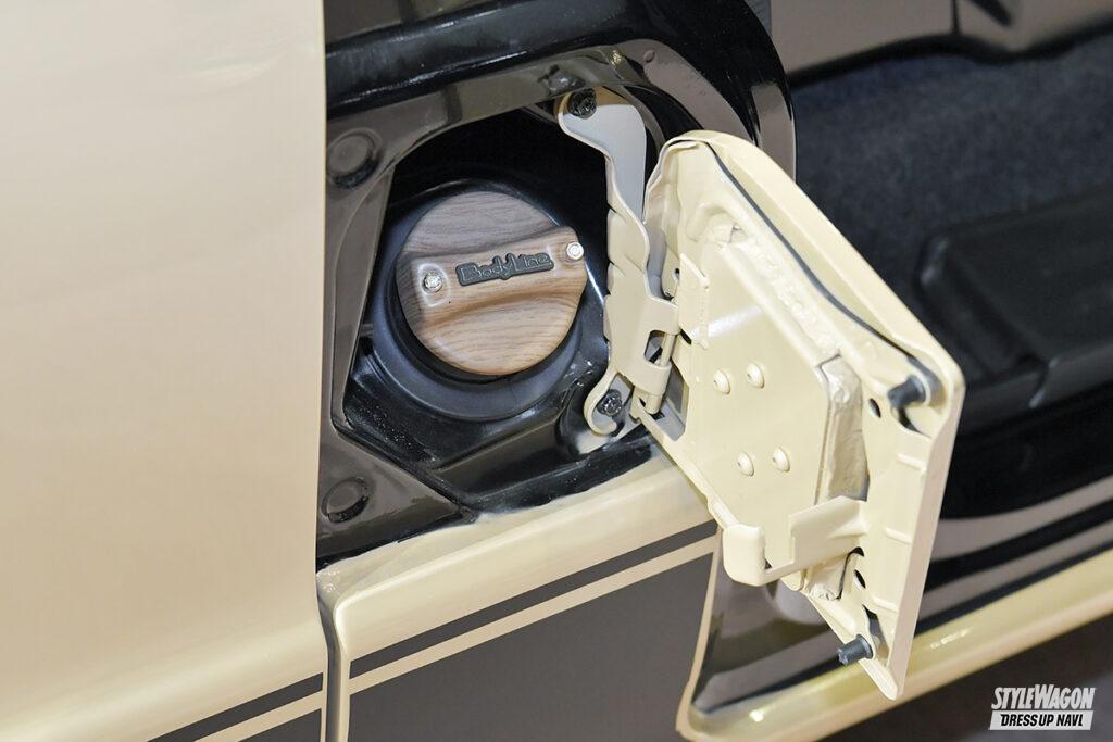 ちなみにベージュ系アースカラーのボディは全塗で、もともとはブラックだったそう。日産セレナ純正の「利休」カラーを駆使し、オフ路線へと強くシフトさせている。