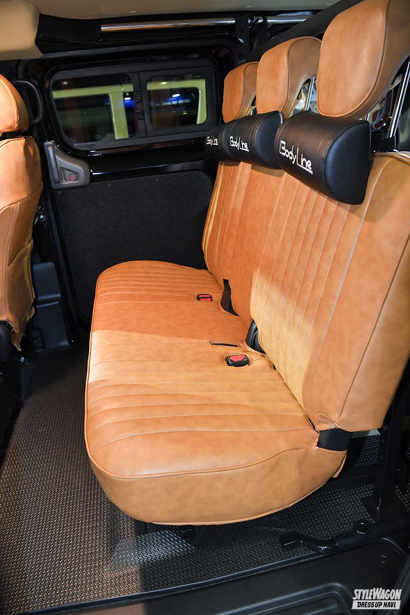 さらに内装ではシートカバーも注目で、名門クラッツィオとコラボした縦ボーダーを装着。クラシックスタイルのカバーで、見た目をスタイリッシュにイメチェンする。フロアに防汚力の強い防水マットを敷くなど、アウトドアユースを見越した仕様となっている点もポイントだ。