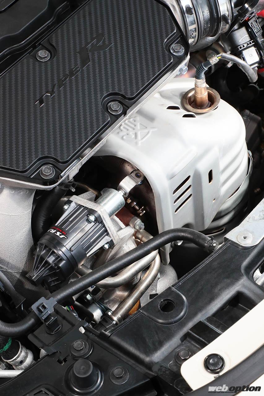 このチューンドを岡山国際サーキットで走らせた阪口良平選手は「ブーストアップでも十二分に速いと感じていたK20Cですが、タービン交換仕様は別次元の速さです。フルブーストとなる5000回転以降の加速性能は圧倒されるレベル! 足回りもノーマルダンパー+ダウンサスという組み合わせでしたが、攻め込んだいった時の不安感は皆無。完成度が高いオールラウンダー仕様のお手本ですね」と評価。