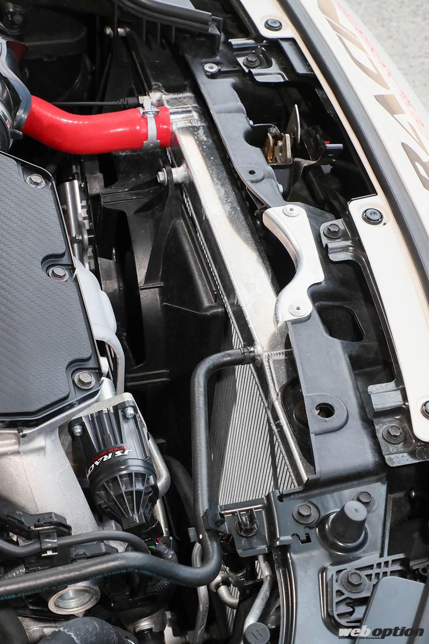 同様に、クーリング対策としてスペシャルローテンプサーモ(1万3200円)やオイルクーラー内蔵型ラジエター(開発中)も投入。ここにエアロボンネットが追加されれば、安心してスポーツ走行が楽しめる仕上がりとなるはずだ。